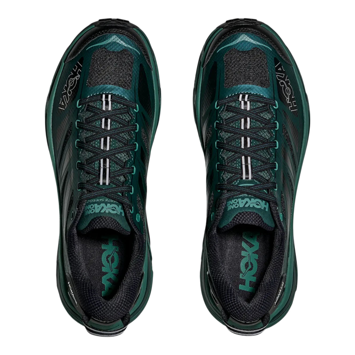 The Mafate Speed 2 from HOKA is engineered to deliver superior cushioning and stability across technical terrain, no matter the distance. Designed with a deep Active Foot Frame for enhanced support and an early-stage MetaRocker™ geometry for smooth heel-to-toe transitions, this trail running shoe ensures efficient movement on challenging routes. The lightweight no-sew SpeedFrame construction and external monomesh debris screen provide breathable protection, while the TPU heel counter adds stability on uneven ground. A cushioned CMEVA midsole absorbs impact, and the Vibram® Megagrip outsole with 5mm tread and strategic high-abrasion rubber zones delivers exceptional traction on rocky, wet, or loose surfaces. Built for endurance and control, the Mafate Speed 2 is ready to perform mile after mile on demanding trail adventures.