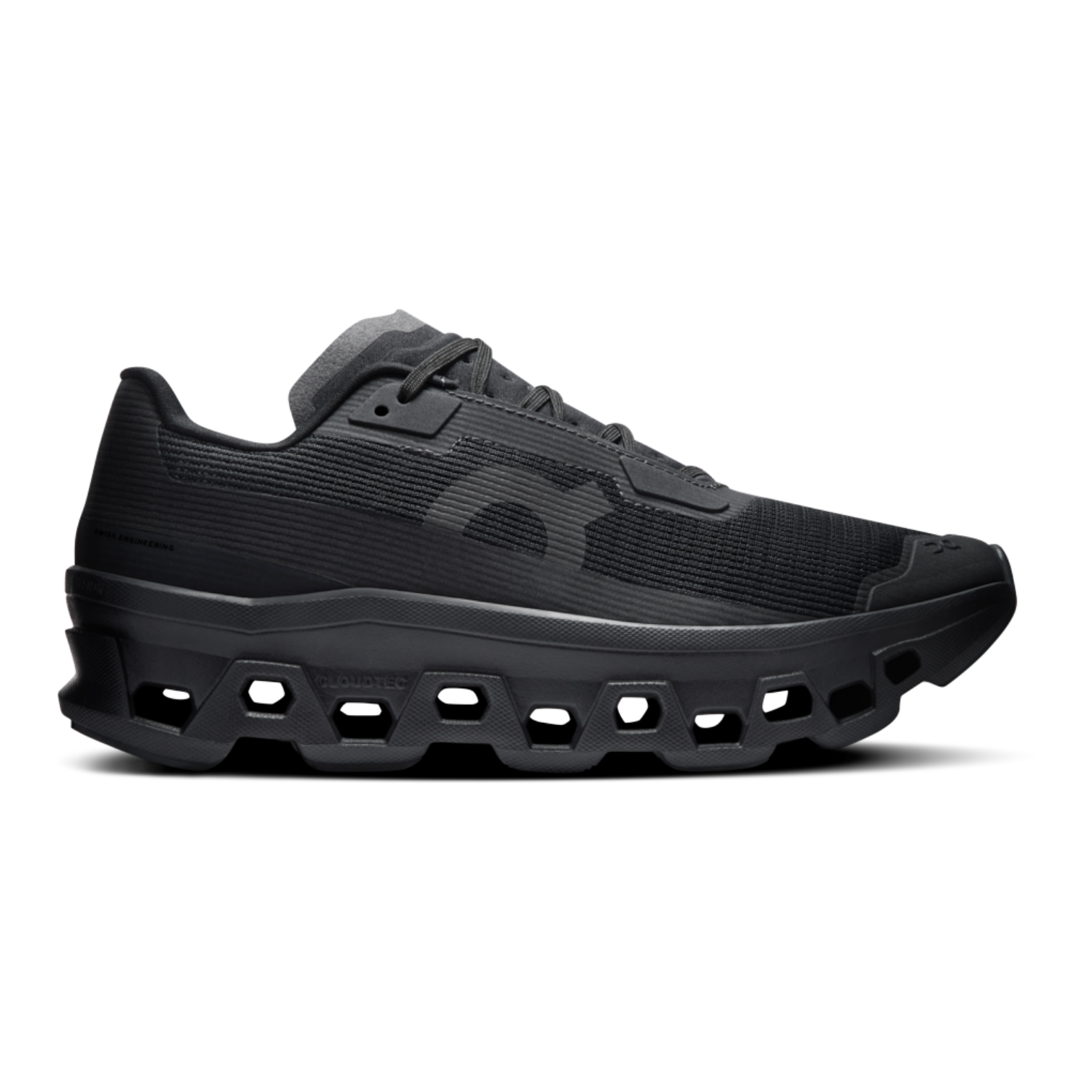 Built for bold comfort and futuristic style, the Cloudmonster Void is an evolution of On’s iconic max-cushioned sneaker. Weighing just 232g, it features the same explosive cushioning as the original, now paired with a newly engineered technical-inspired mesh upper and molded overlays for enhanced breathability and structure. The Speedboard® delivers responsive stability, while TPU eyelet stays and a perforated microfiber tongue offer stealthy durability and a locked-in fit. Finished with rubber outsole pads for multi-surface traction and minimalist branding for sleek, everyday wear.