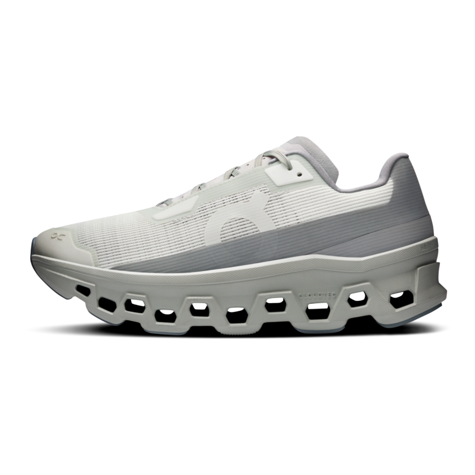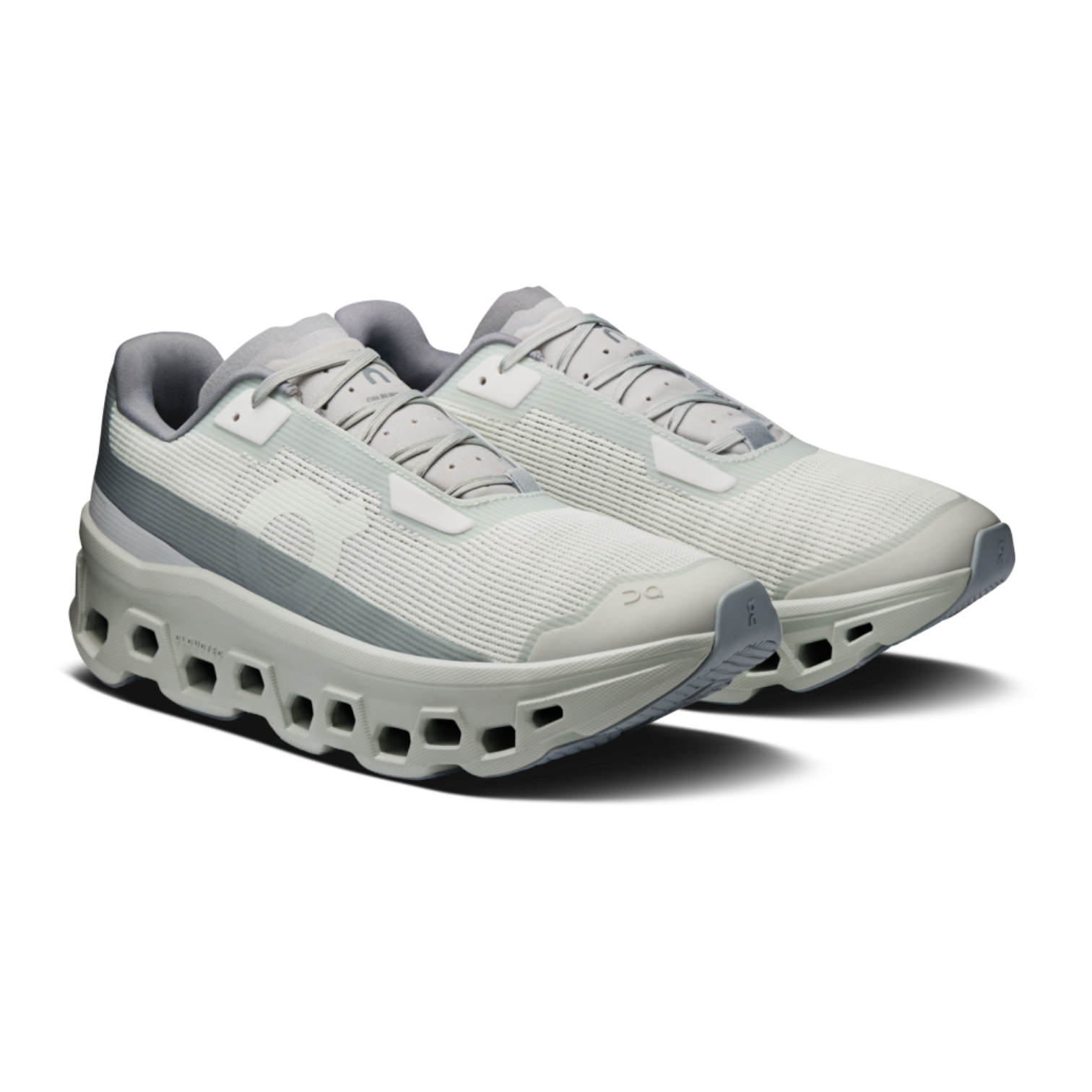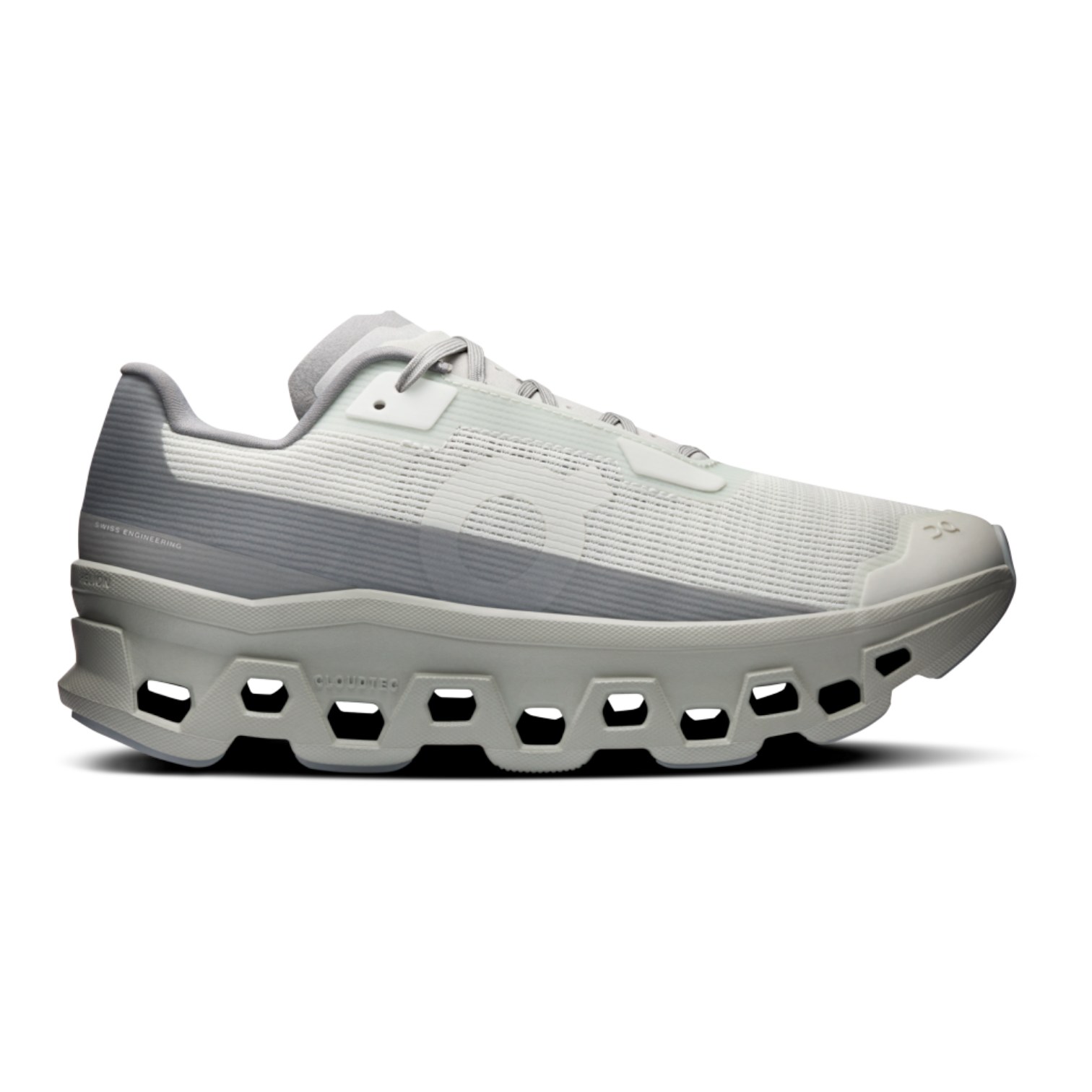 The On Running Cloudmonster Void in Iceberg | Tin delivers bold, max-cushioned comfort redesigned for effortless all-day wear. Built with the same iconic CloudTec® cushioning as the original Cloudmonster, this lightweight sneaker offers soft landings, responsive movement and lasting comfort. A breathable haptic mesh upper and perforated microfiber tongue keep airflow high, while TPU eyelet stays add a clean, stealthy finish. The integrated Speedboard® enhances stability and smooth transitions, and rubber outsole pads provide reliable grip on urban surfaces. Finished with minimalist branding, the Cloudmonster Void blends performance technology with modern lifestyle style for everyday versatility.