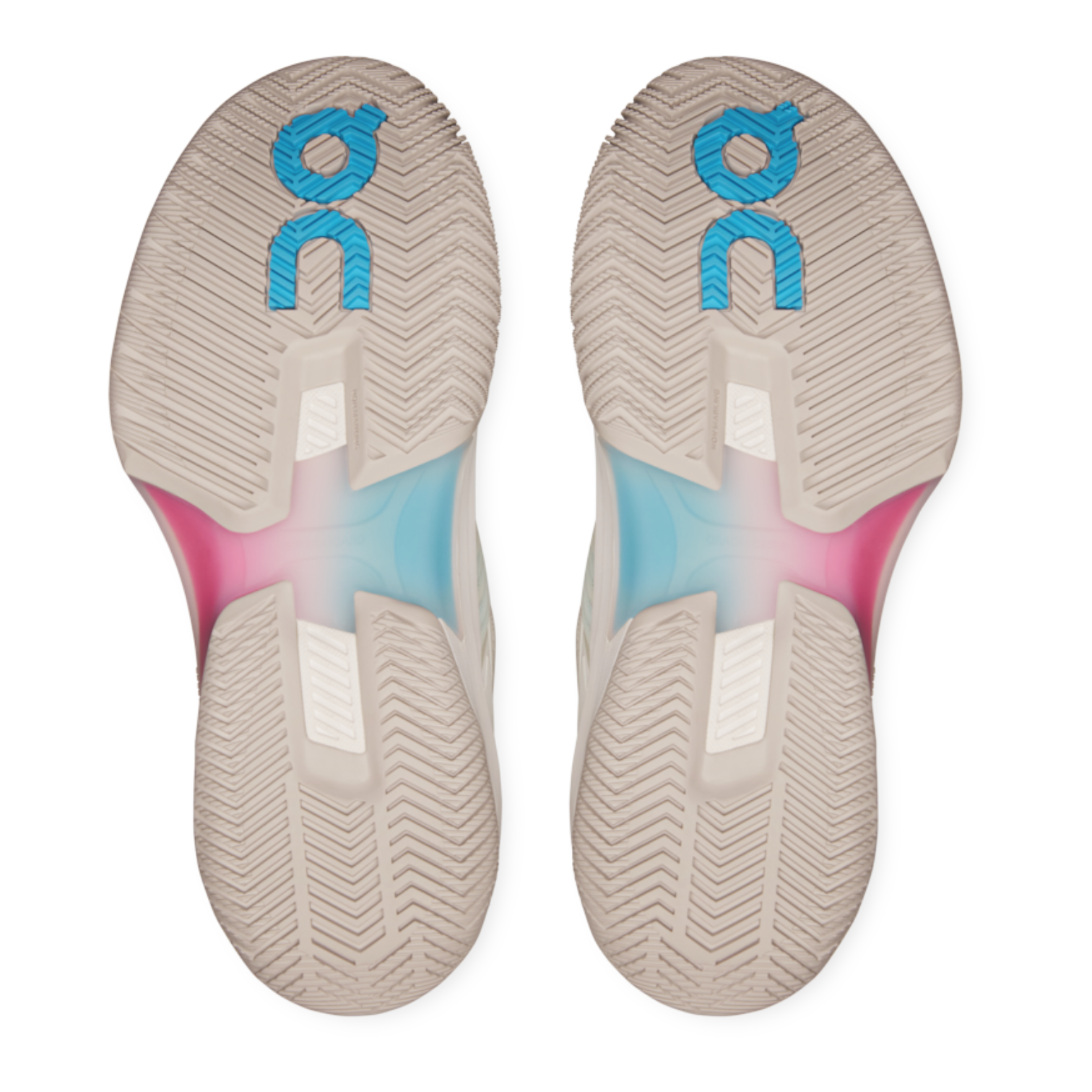 Designed for players who thrive on speed, power, and high-intensity movement, the Roger Pro Fire from On delivers elite stability and control on hard courts. Built with an exclusive Speedboard® that supports the midfoot during aggressive lateral movements and extends under the toe for enhanced energy return, this performance tennis shoe keeps every step explosive yet natural. Reinforced overlays, molded protection, and a durable toe and midfoot construction ensure long-lasting wear for players who slide and push hard, while thick padding in the heel and tongue provides maximum comfort and protection throughout intense matches. A secure midfoot lacing system and split herringbone rubber outsole complete the design, offering superior grip, confidence, and precision during fast direction changes.