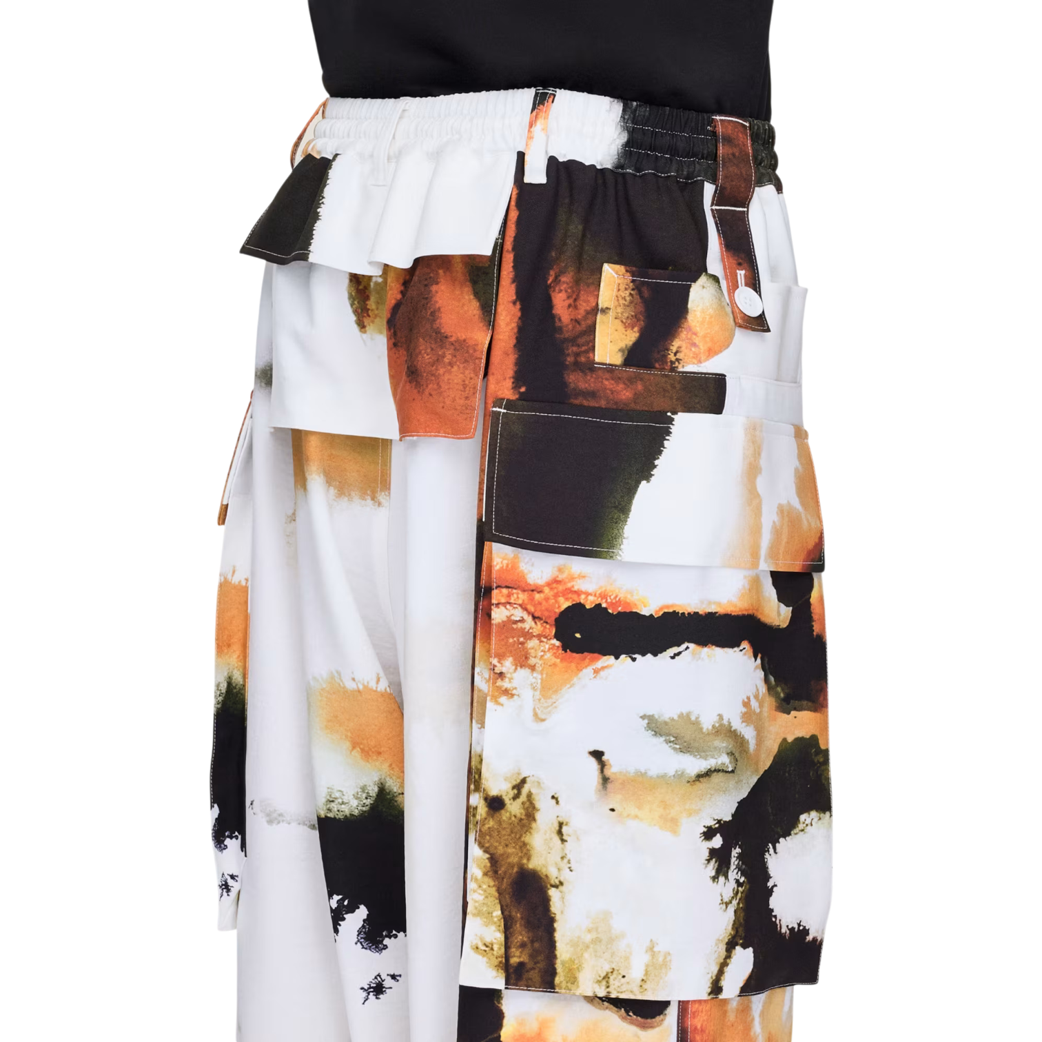 The Y-3 AOP Sport Uniform Cargo Pants reimagine classic cargo styling through an expressive, fashion-forward lens. Crafted from recycled twill with an oversized, relaxed silhouette, these pants feature an elasticated waist with drawcord and belt loops for adaptable comfort. Inspired by amber ink, the all-over print transitions from warm golden hues to deep oranges and browns, symbolizing energy, transformation, and beauty. Multiple patch, cargo, and flap pockets enhance functionality, while bungee-adjustable hems allow you to customize the fit for modern streetwear appeal.