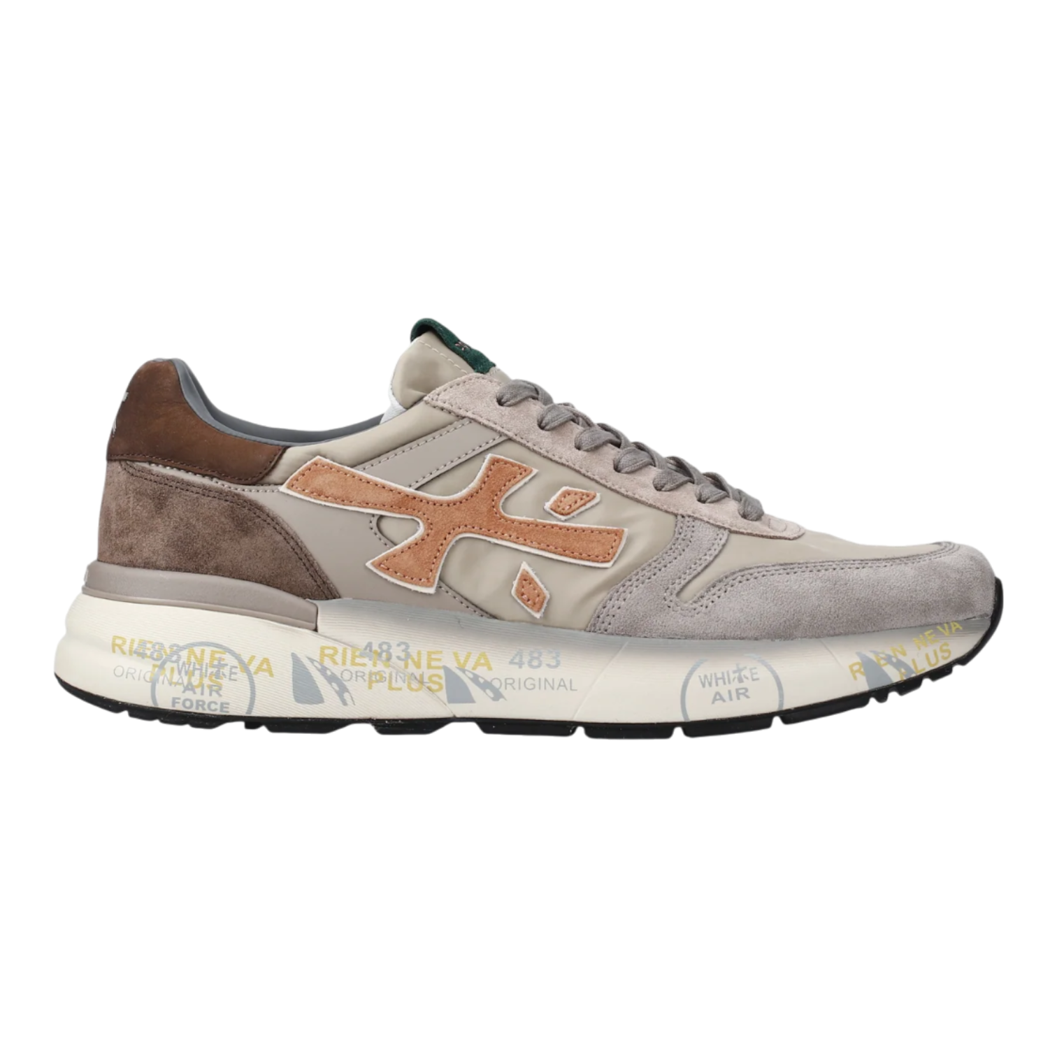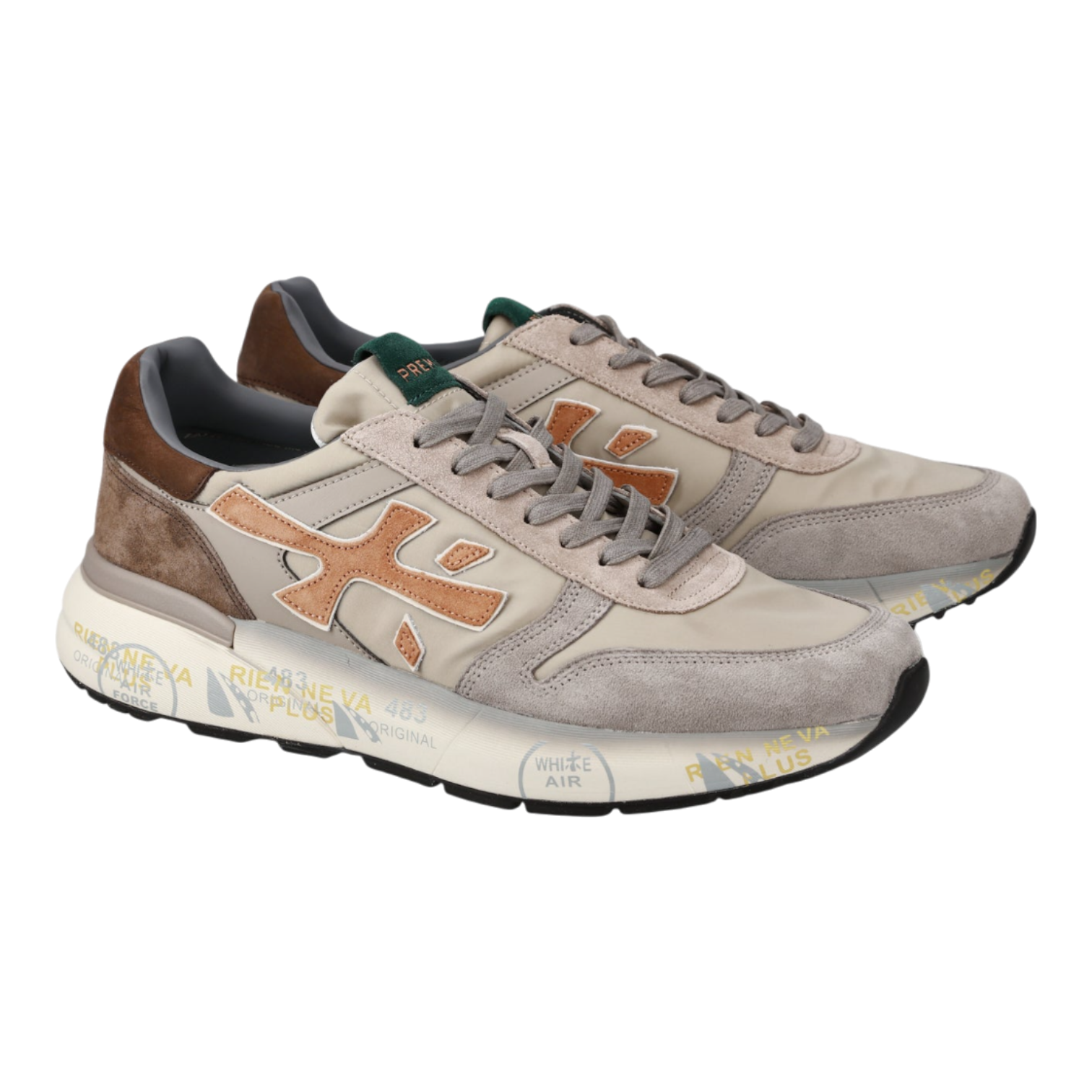 The Premiata Mick sneakers combine premium materials with a timeless casual aesthetic. Crafted in a refined taupe and brown colorway, the upper features a balanced mix of high-quality leathers and technical fabrics for durability, breathability, and everyday comfort. The iconic Premiata silhouette is elevated with the signature logo, adding a distinctive designer touch. Designed for all-day wear, these sneakers feature a lightweight, cushioned sole that provides excellent support and flexibility. Finished with a smooth leather lining, the Mick sneakers deliver effortless style with reliable performance, making them an essential choice for modern casual looks.