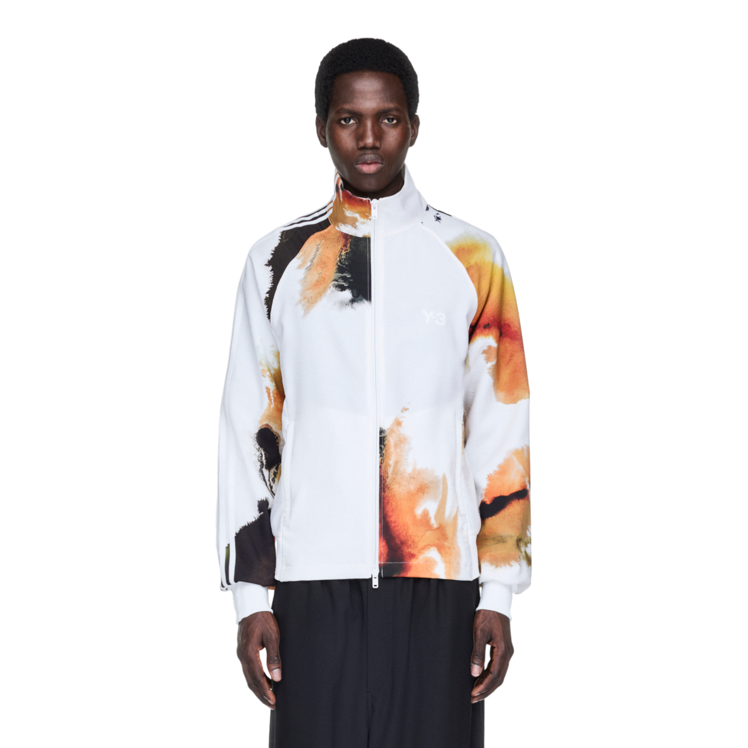 The Y-3 AOP 3-Stripes Track Top redefines a classic sports silhouette with an artistic, avant-garde twist. Crafted from smooth recycled polyester, this regular-fit track jacket features a distinctive all-over print inspired by amber ink, blending warm golden tones with rich oranges and browns. A unique single-sleeve 3-Stripes detail, two-way full zip, functional side pockets, and a satin heat-transfer Y-3 logo complete the design, making it a statement piece that fuses performance, sustainability, and high-fashion streetwear.