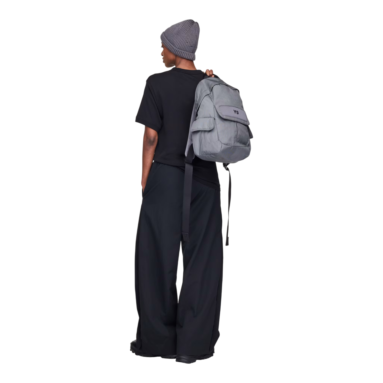 The Y-3 Small Backpack defines modern versatility with a refined, functional design. Crafted from durable CORDURA® polyamide, it features a protective rain-cover flap and a spacious main compartment with a dedicated laptop sleeve and inner zip pocket with D-ring for secure organization. Additional storage includes a front inverted pleat pocket and gusseted side pockets, while adjustable air-mesh straps and back panel ensure all-day comfort. Finished with a sleek silicone Y-3 logo, this backpack blends performance, durability, and contemporary style for everyday urban use.