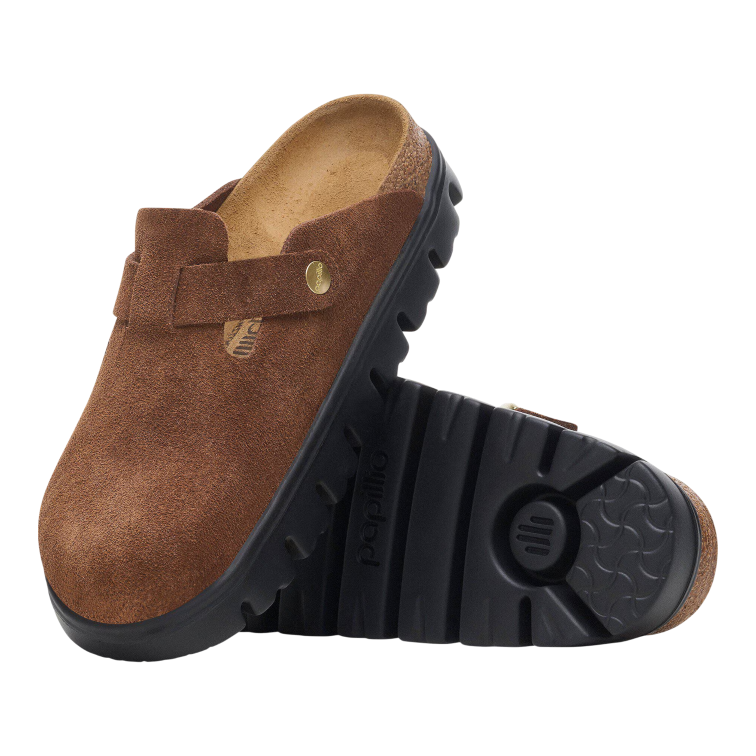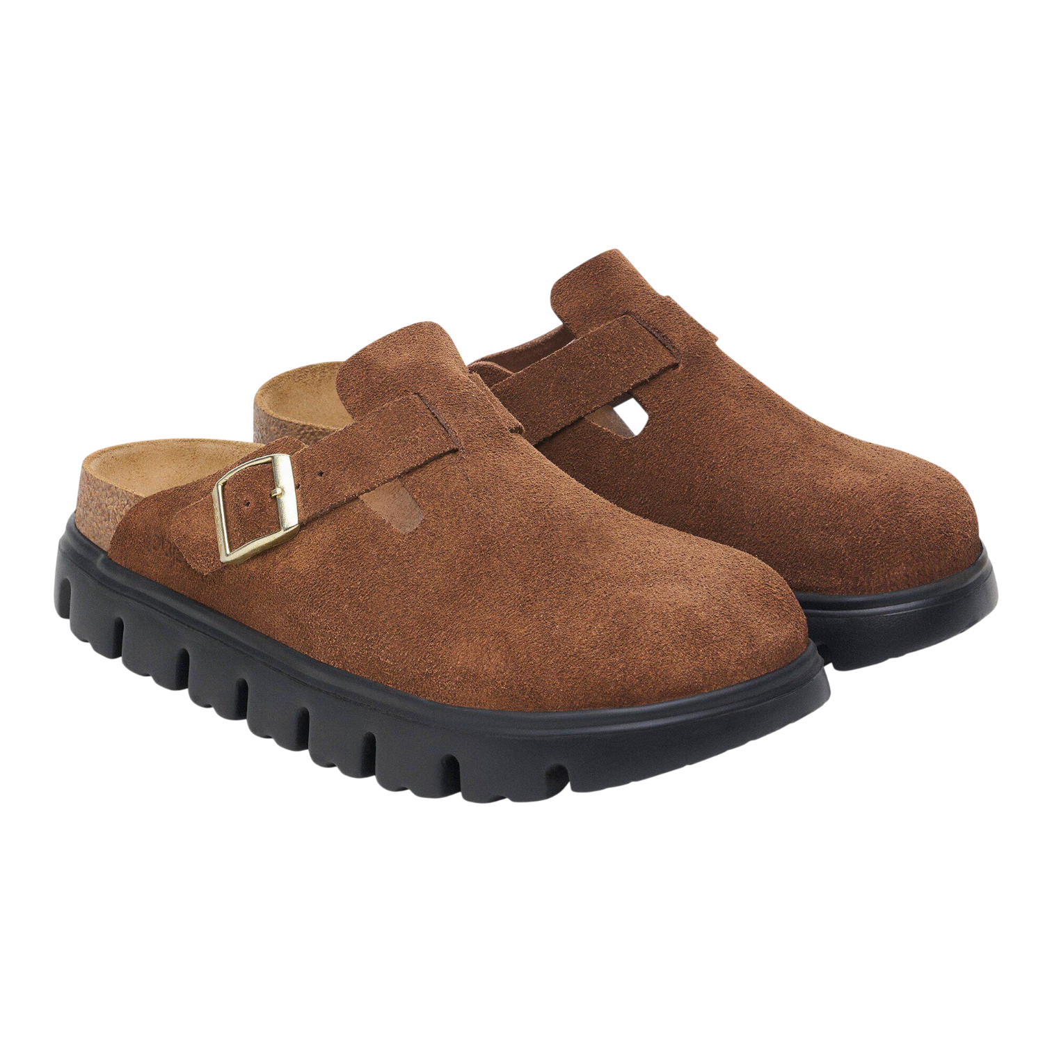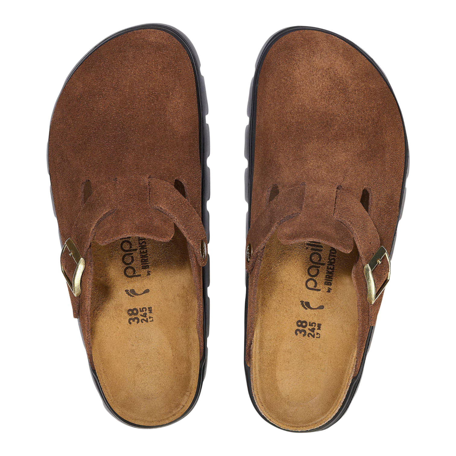 Crafted from soft, velvety suede in a rich Dark Tea tone, the upper maintains the heritage look of the original Boston while gaining new visual impact from the chunky platform sole below. At its core, Birkenstock’s signature contoured cork-latex footbed molds to your foot over time, delivering personalized support, stability, and lasting comfort.