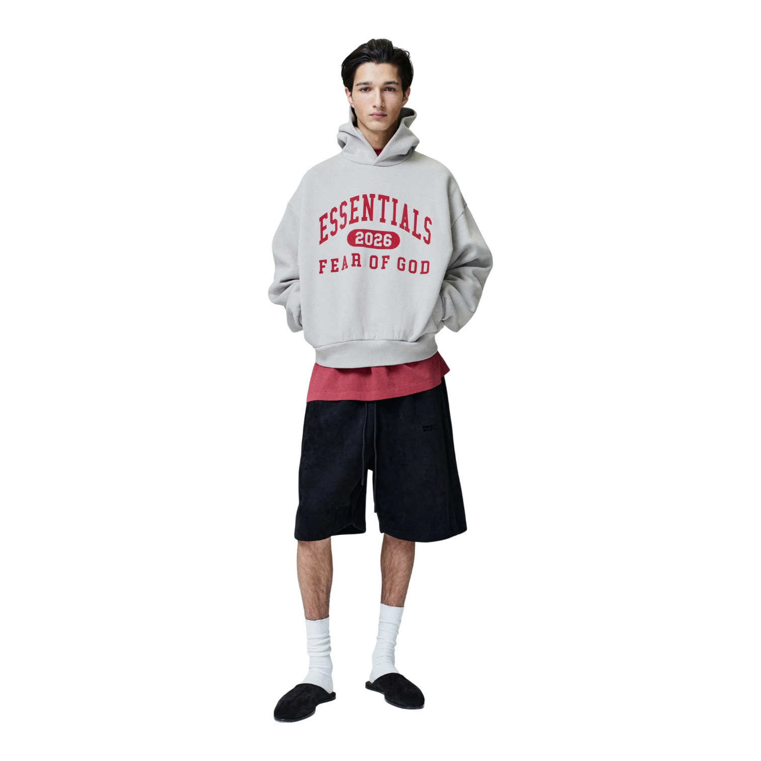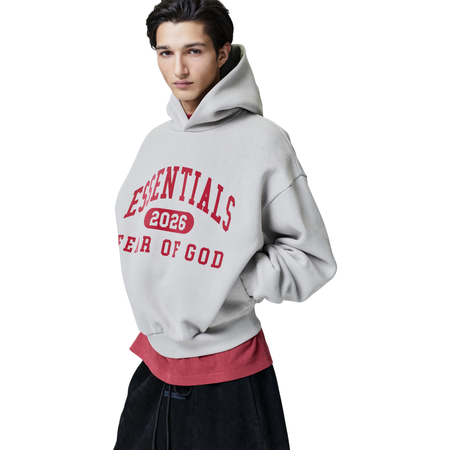 The Fear of God Essentials Classic Hoodie is crafted from premium 480gsm core fleece, delivering the ideal balance of comfort, warmth, and structure. Made from an 80% cotton and 20% polyester blend, it offers softness with enhanced durability and shape retention. Designed in a classic fit with signature Fear of God relaxed proportions, this hoodie provides an effortlessly elevated silhouette. A collegiate-inspired “Essentials Fear of God 2026” HD print is branded across the front, adding bold yet refined streetwear appeal. Finishing details include a double-layer hood for added structure, functional side pockets, rib-knit cuffs and waist hem, and a Fear of God Essentials rubberized label stitched on the hood. Imported and perfect for everyday wear, this hoodie blends timeless design with modern luxury street style