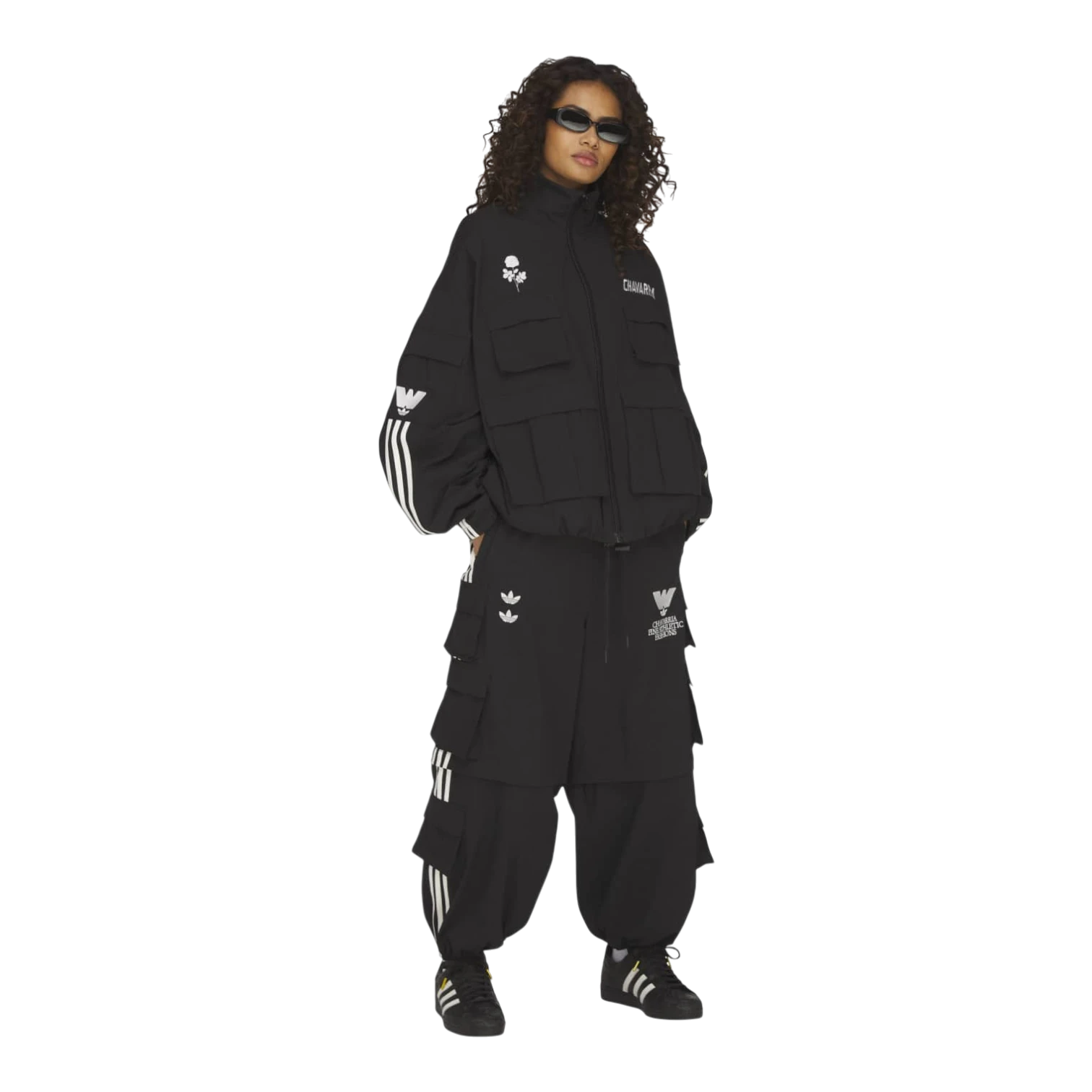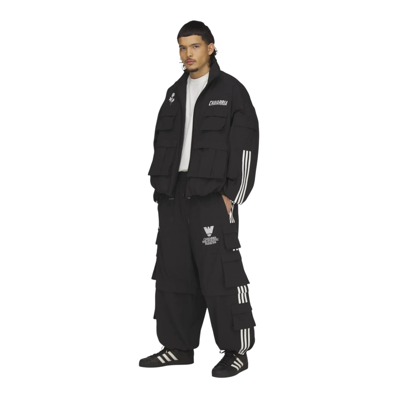 Built from durable woven fabric, the adidas cargo track jacket streetwear offers a premium feel while maintaining comfort throughout the day. The structured construction and clean lines define the look of the adidas x Willy Chavarria cargo jacket black, balancing function with style.