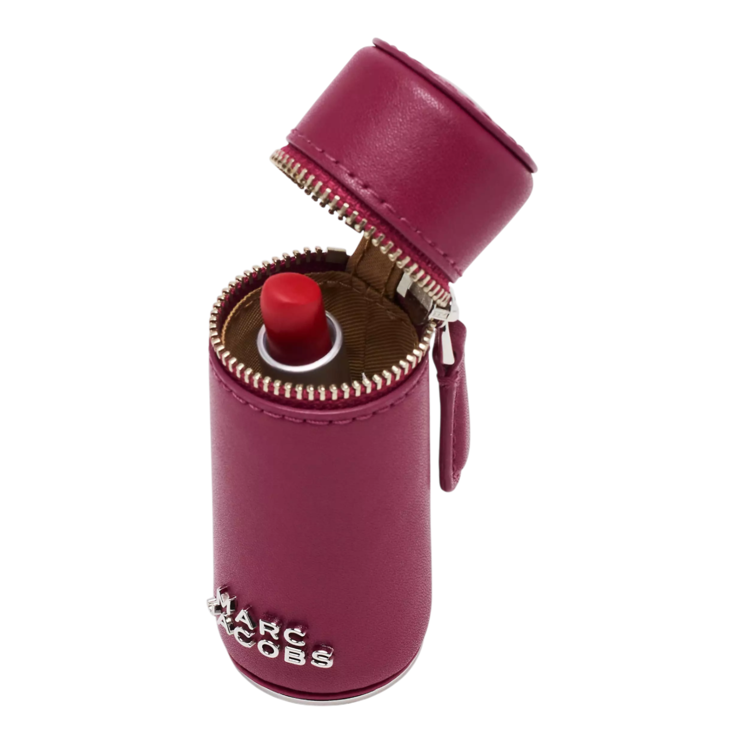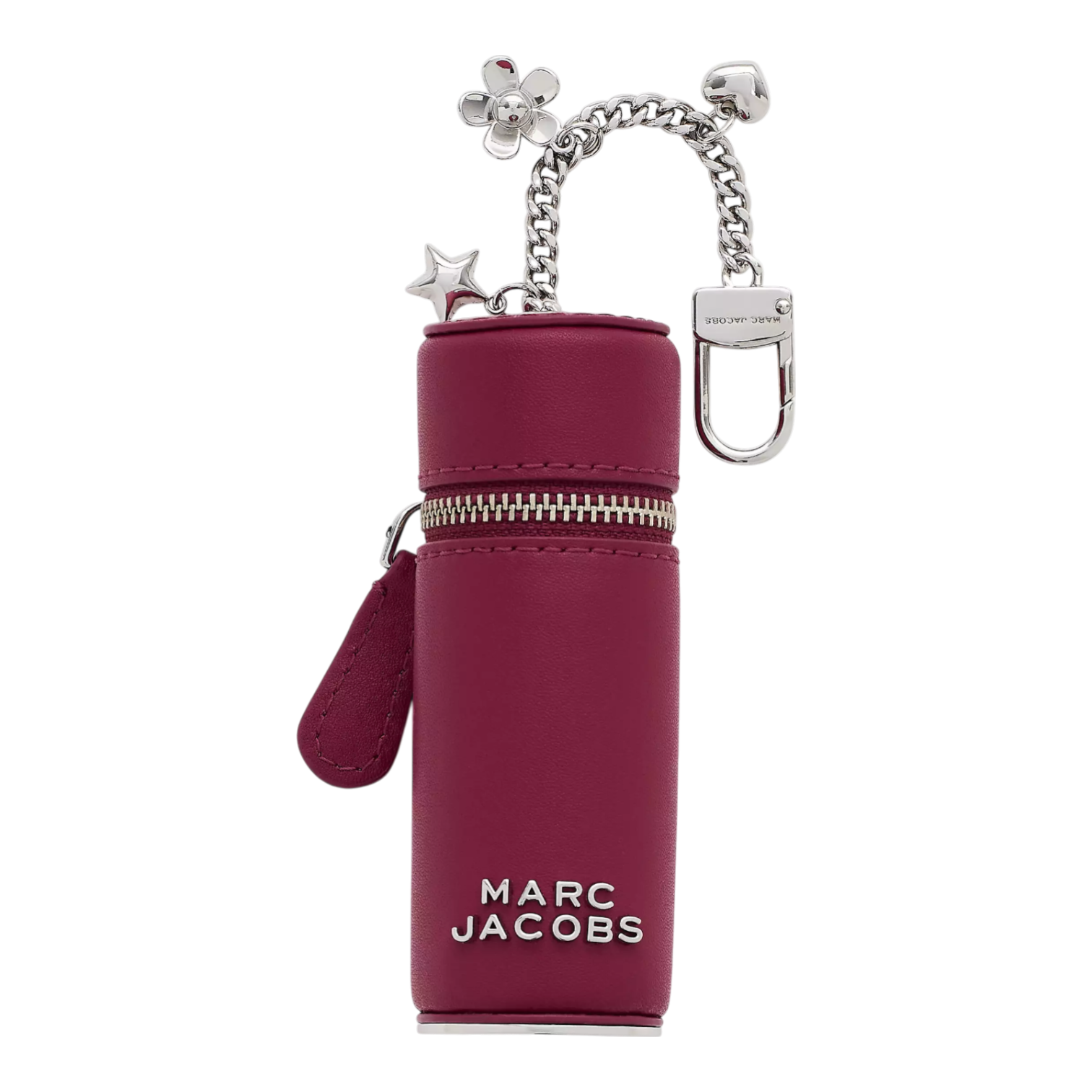 Add a touch of playful luxury to your accessories with The Everyday Lipstick Case Bag Charm from Marc Jacobs. Crafted from smooth leather, this stylish mini accessory is designed to keep your lipstick secure while offering convenient on-the-go touch-ups. The zip-around closure and mirrored metal base add both practicality and elegance, while the twill lining protects your essentials. Finished with signature metal logo branding and a handy dog clip, this chic lipstick case easily attaches to your handbag or belt loop, making it the perfect combination of fashion and function for everyday styling.