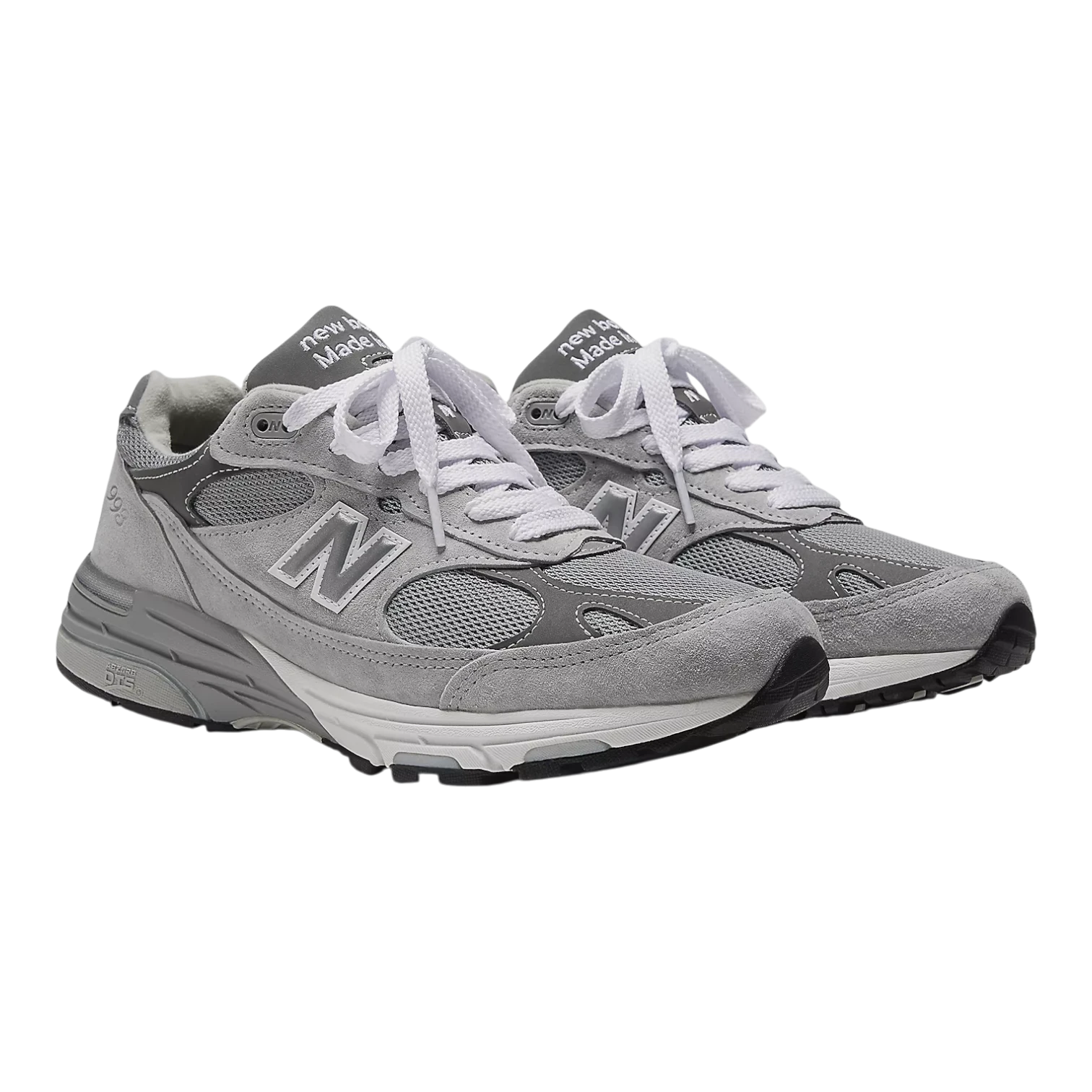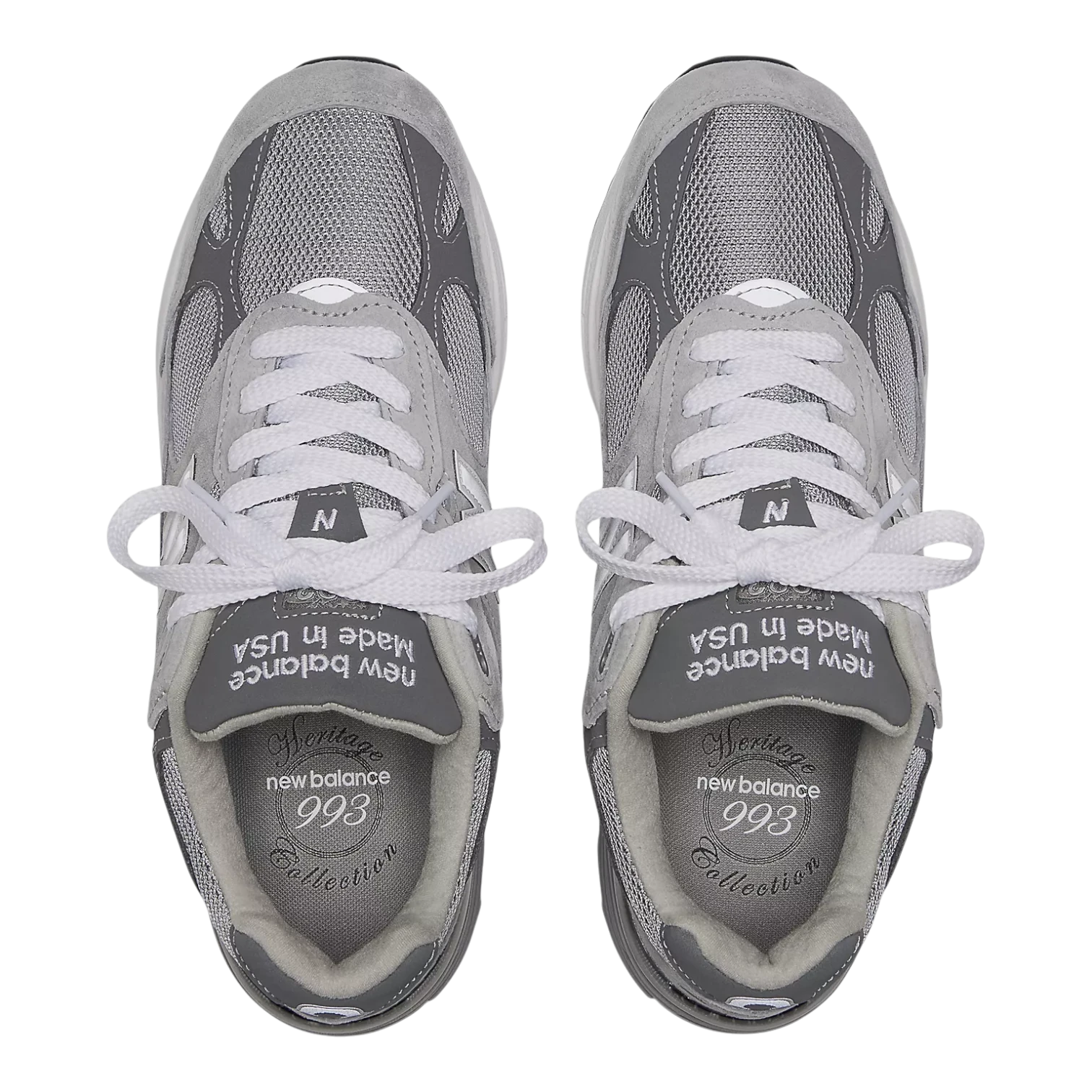 The Made in USA 993 sneakers from New Balance are a refined evolution of the iconic 99X series, blending heritage design with advanced cushioning technology for everyday performance and comfort. Originally introduced in 2008, the 993 combines elements from the 991 and 992 silhouettes, featuring a breathable mesh upper with premium pig suede overlays for a classic yet durable finish. The ABZORB midsole works alongside ACTEVA cushioning to provide responsive support and impact absorption, while reflective accents enhance visibility and the Ndurance rubber heel outsole improves long-term durability. Finished with a signature dual-tone midsole and Made in USA craftsmanship, the 993 delivers timeless style with premium comfort.