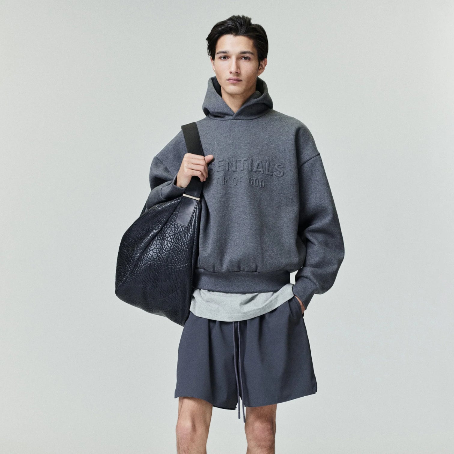 A bold embossed “Essentials Fear of God” logo spans the front, adding a refined statement to the minimalist design. The look is finished with a rubberized Fear of God Essentials label stitched on the hood, reinforcing the brand’s iconic identity. Versatile and built to last, this hoodie is a foundational piece for modern, effortless styling.