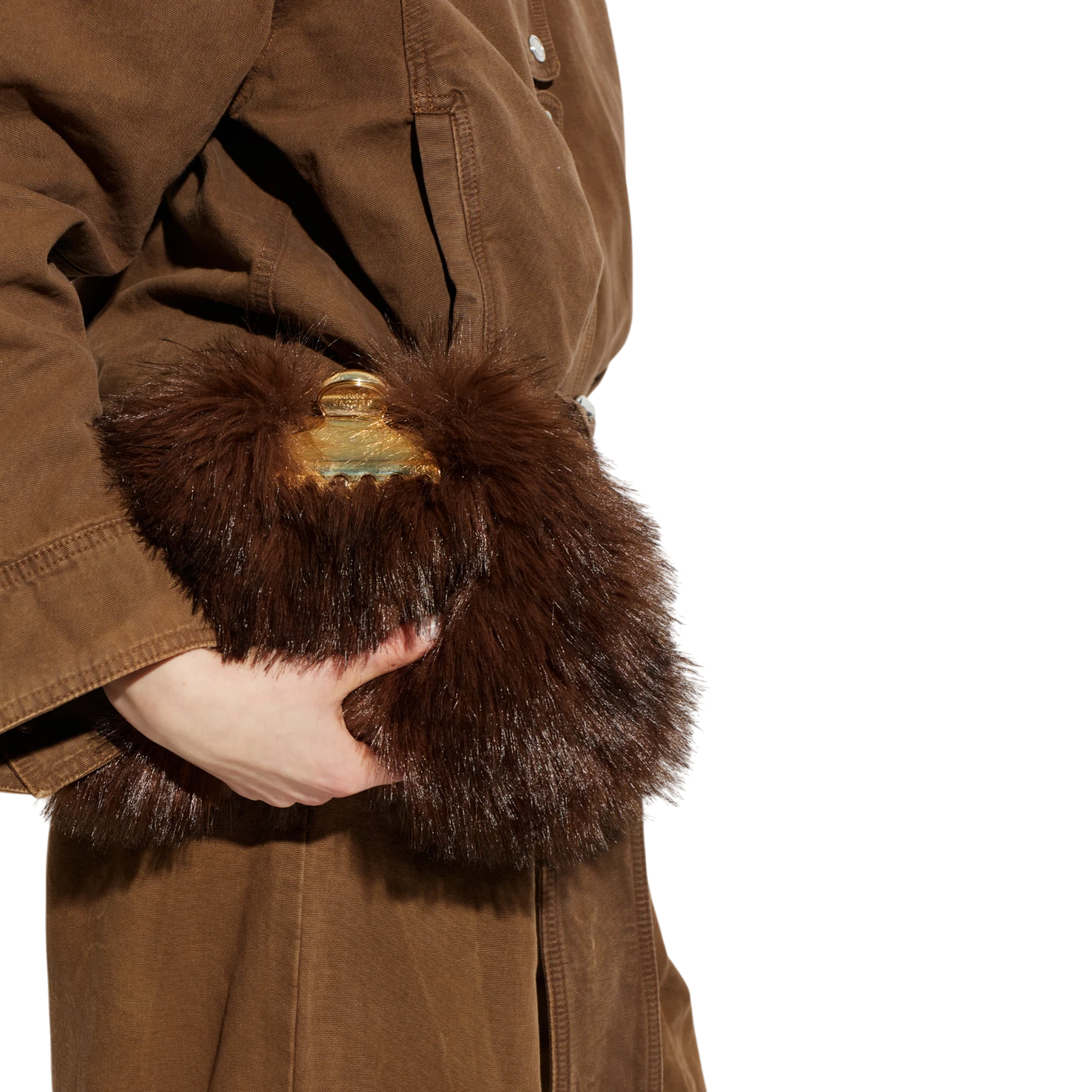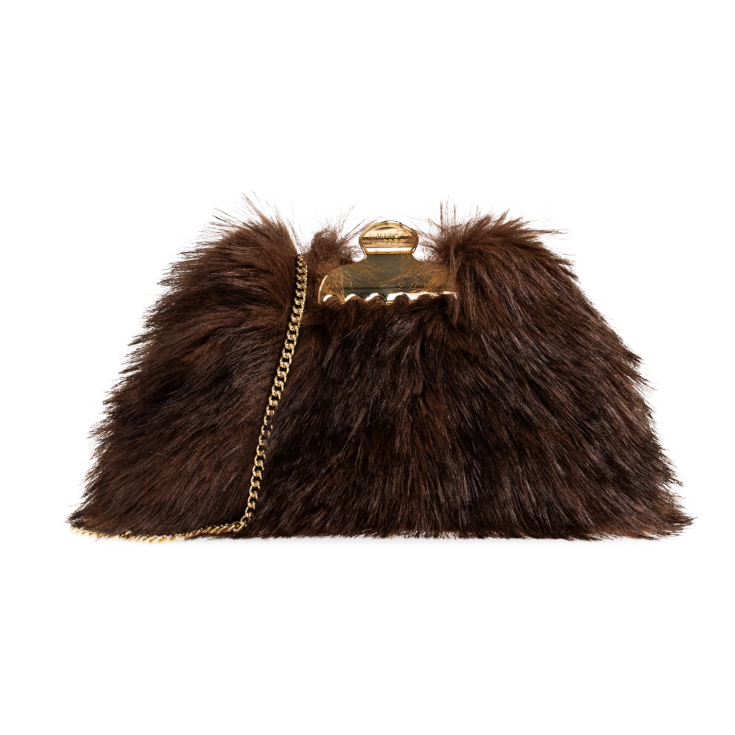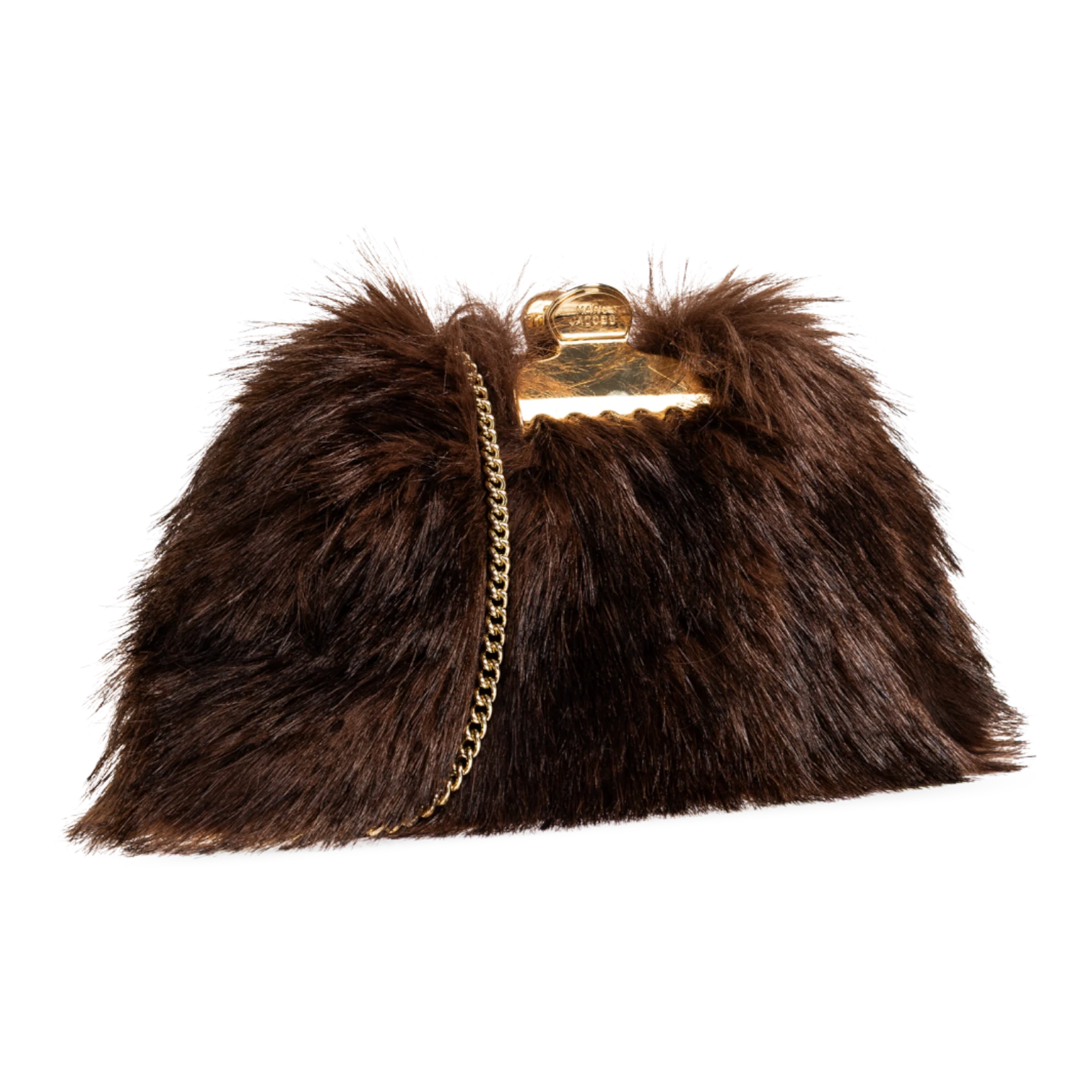 The The Glam Small Clutch Bag by Marc Jacobs is a statement accessory that blends bold design with timeless elegance. Crafted with luxurious fur-like material and refined leather trim, this designer clutch features a unique triangular silhouette with softly rounded edges for a modern yet sophisticated look. The rich brown tone adds a classic touch, while the decorative gold clasp and engraved Marc Jacobs logo elevate its premium appeal. A hidden chain strap offers versatile styling, allowing you to carry it as a clutch or shoulder bag. Perfect for evening events, parties, or special occasions, this Marc Jacobs clutch delivers standout style with practical functionality.