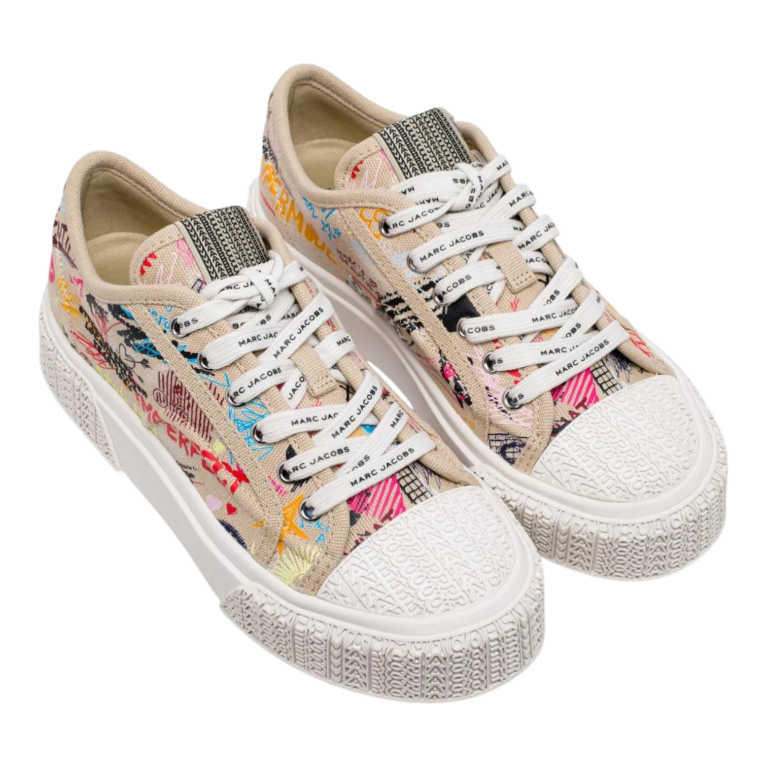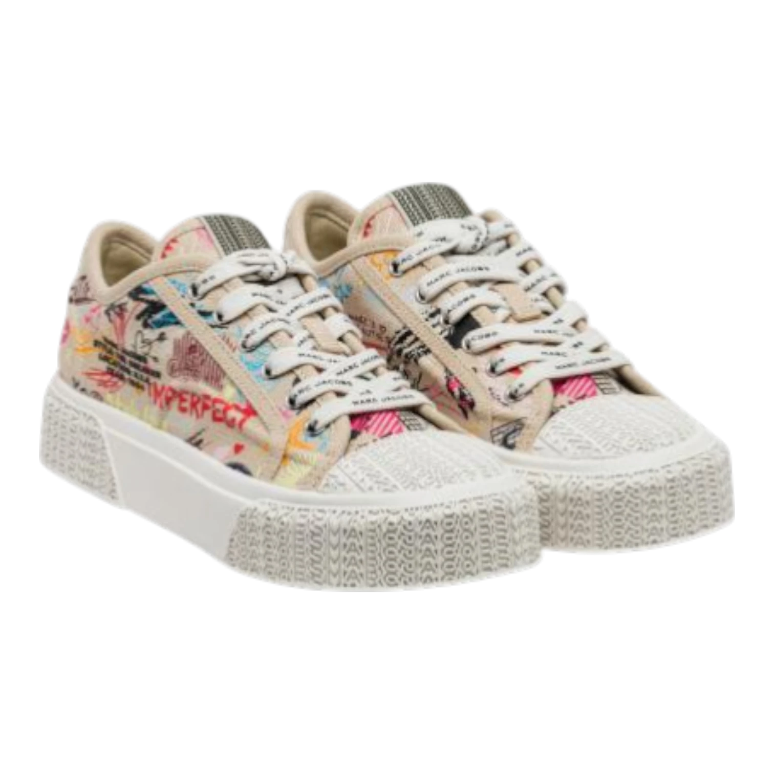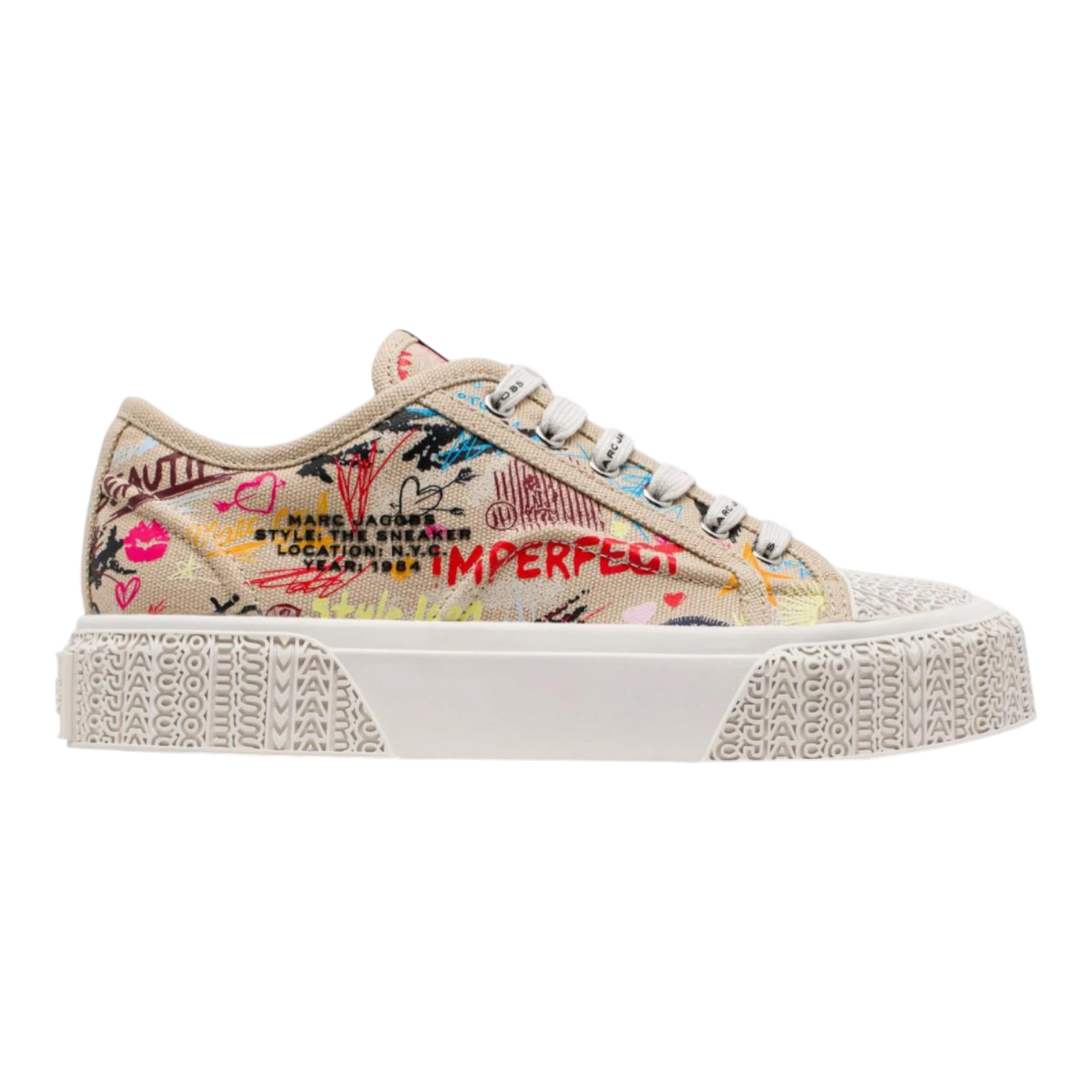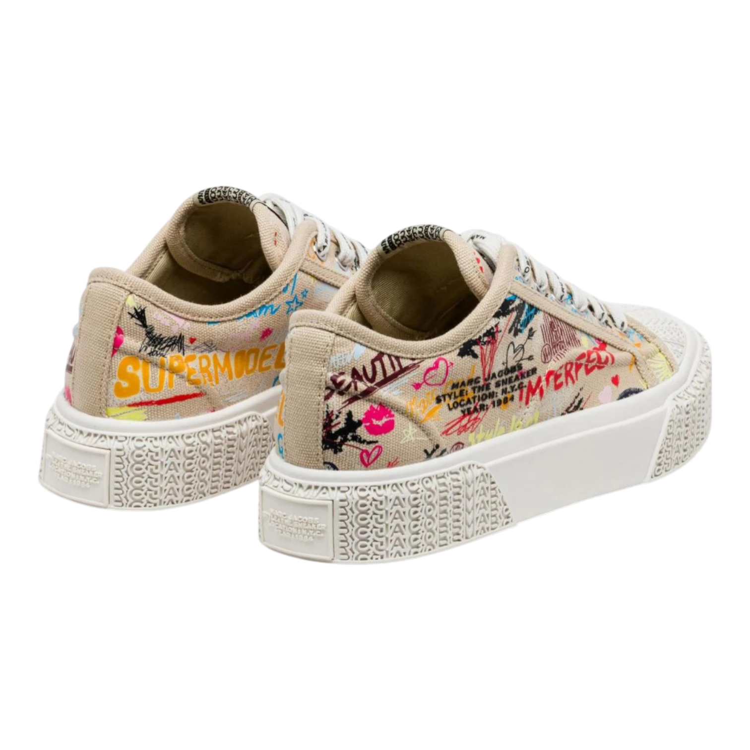 The Punk Scribble Sneaker from Marc Jacobs brings edgy street style to a timeless canvas silhouette. Designed with a bold punk-inspired tattoo scribble print, these low-top sneakers combine artistic expression with everyday comfort. The breathable cotton upper and soft cotton footbed provide lightweight wear, while the durable rubber sole with Marc Jacobs’ signature yellow outsole ensures reliable traction and distinctive branding. Perfect for casual outfits and urban styling, the Punk Scribble Sneaker delivers a unique blend of rebellious design, comfort, and everyday versatility.