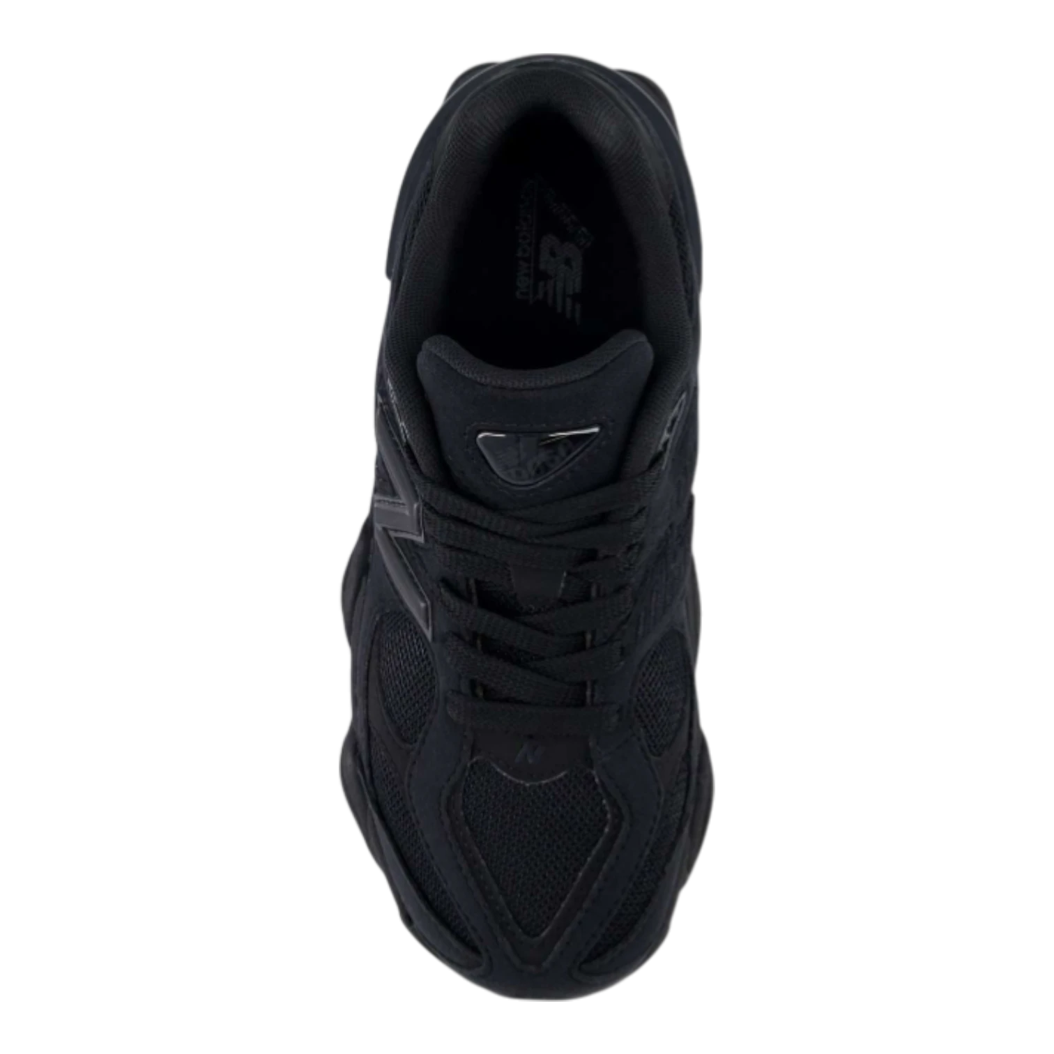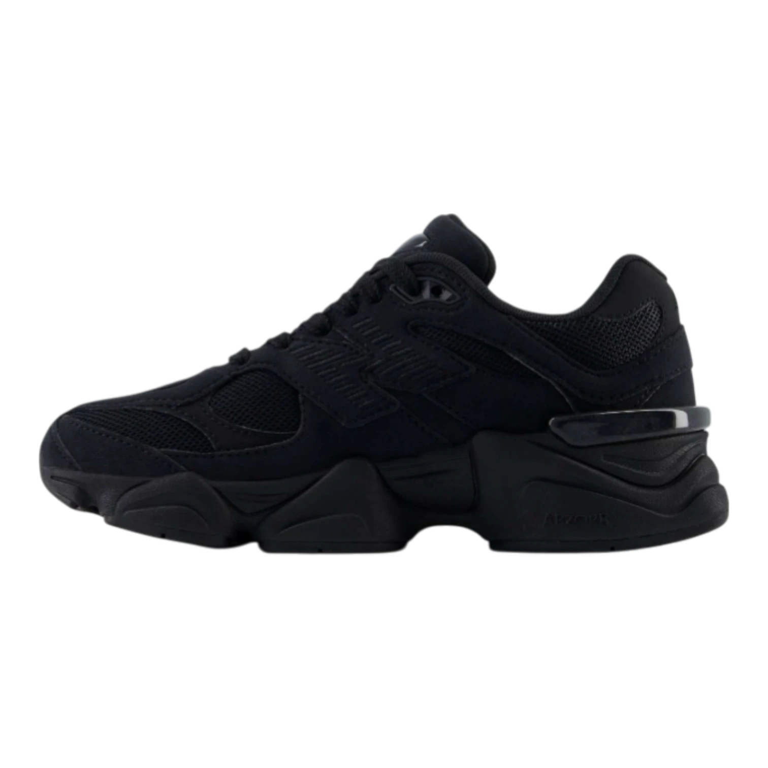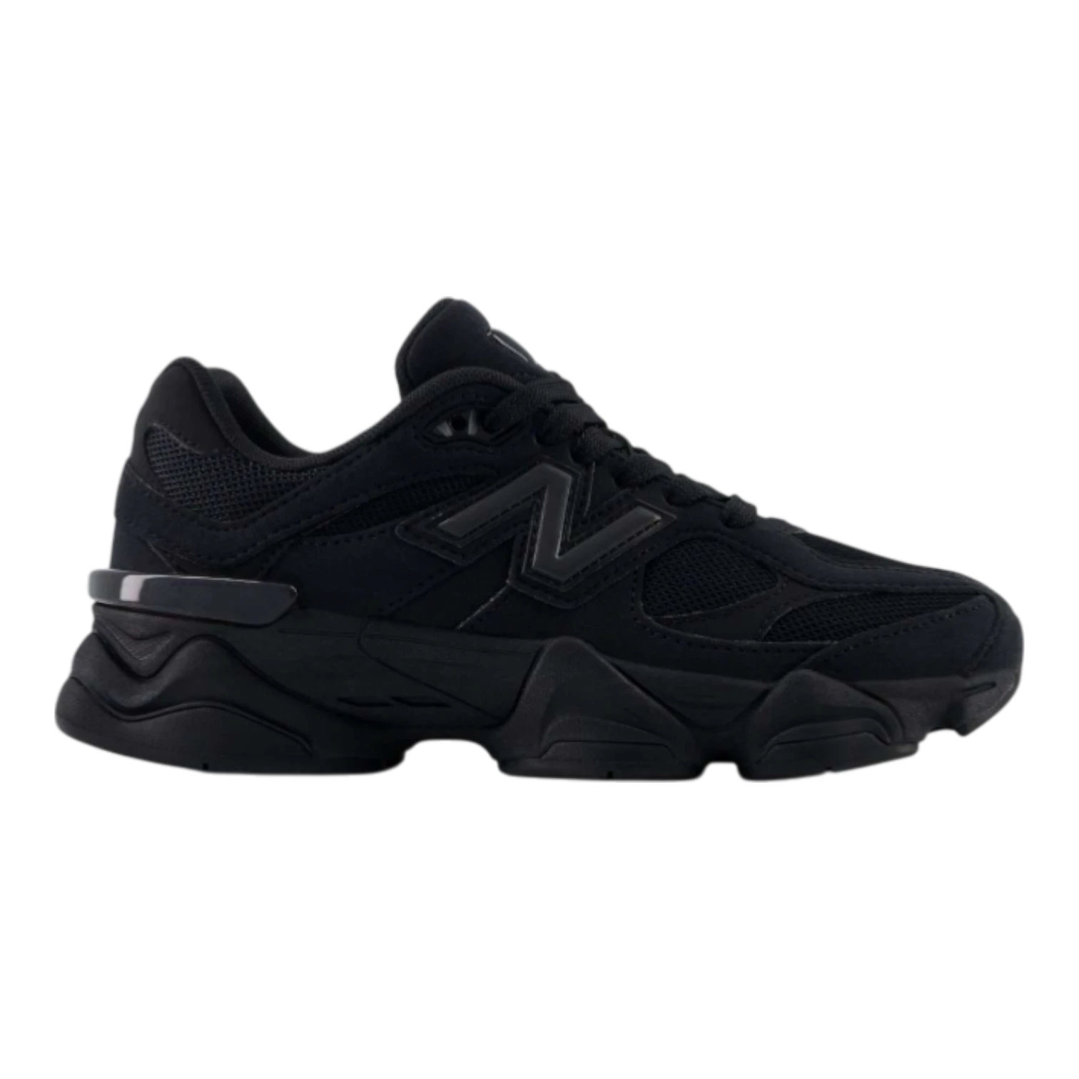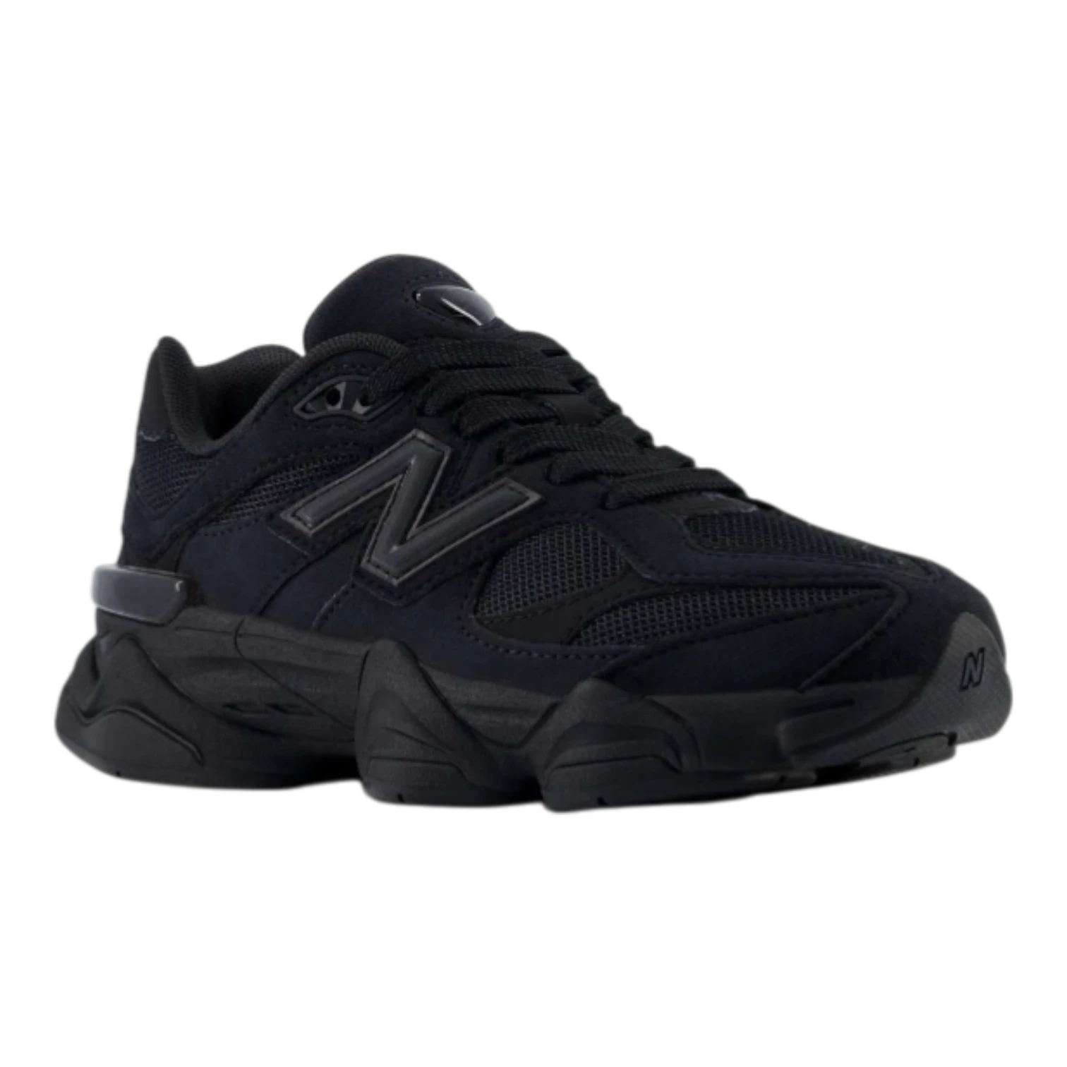 The New Balance 9060 Triple Black GC9060BB brings the bold, future-facing energy of the 99X series to the next generation. Designed for kids, this all-black edition blends heritage running DNA with a warped Y2K-inspired aesthetic.