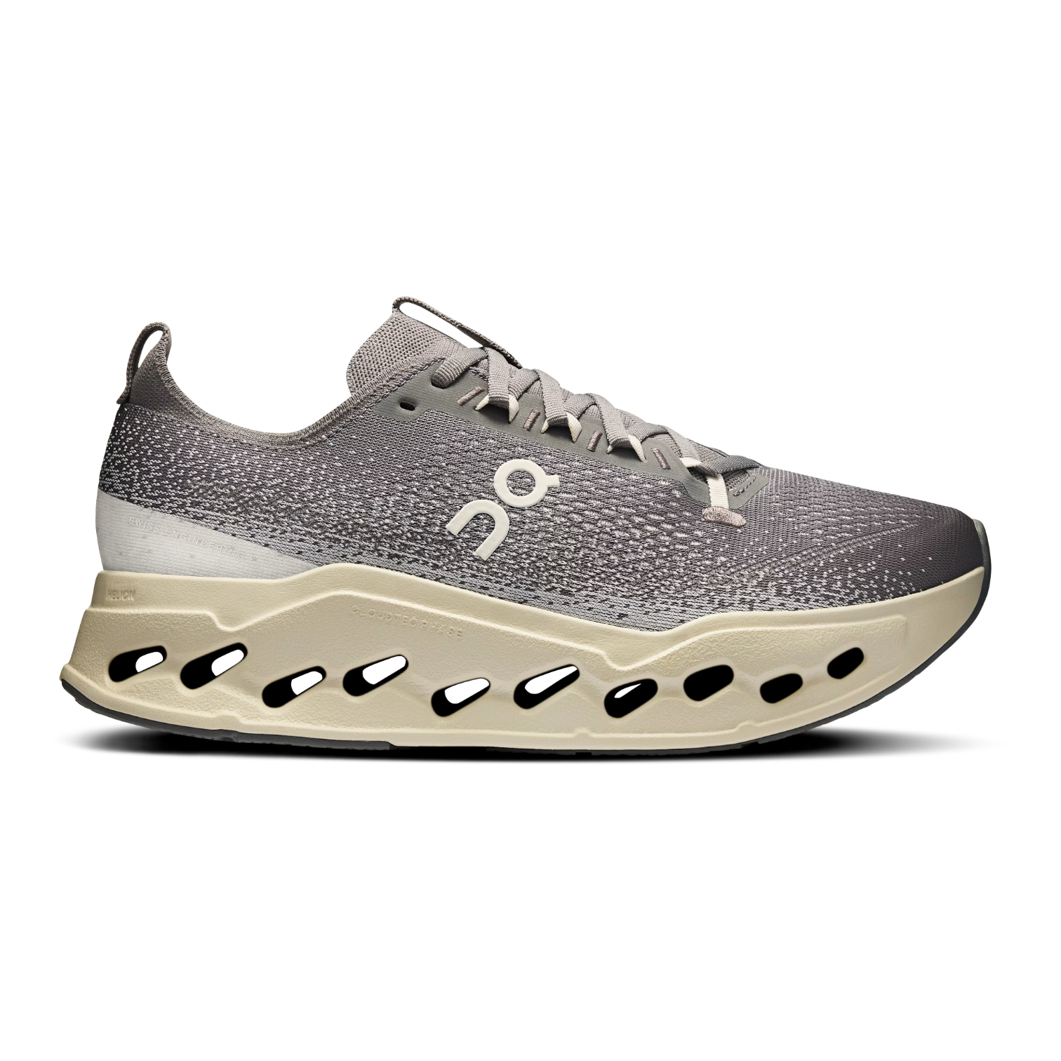 The upper is built with engineered mesh to optimize breathability, while a revamped eyestay construction enhances fit and midfoot support. A plush tongue adds step-in comfort, completing a running shoe designed entirely around smoothness, stability, and long-lasting wear. Finished in a clean Asphalt / Ice colorway, the Cloudsurfer Max blends technical innovation with understated modern style.