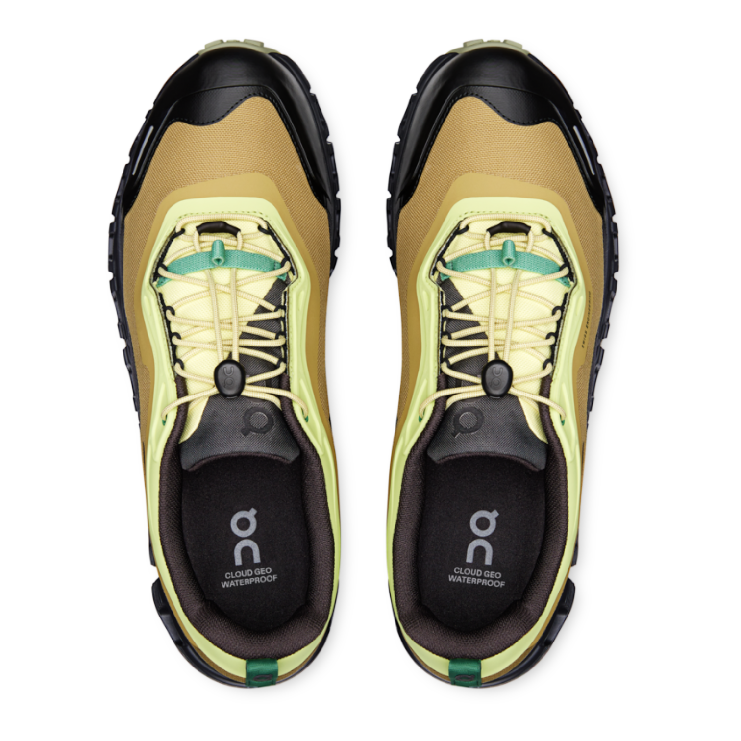 The Cloud 6 Geo Waterproof is a versatile all-day shoe designed for city exploration and light hiking, combining urban style with outdoor-ready performance. Engineered by On, this hybrid sneaker features CloudTec® cushioning in Zero-Gravity foam for soft landings and lasting comfort, while the Missiongrip™ outsole delivers reliable traction on wet streets and easy trails. A fully waterproof, multi-layered upper keeps your feet dry in changing conditions, supported by a protective mudguard and toe cap for added durability. The Speedboard® enhances stability and energy efficiency for all-day wear, while the easy toggle lacing system allows quick on-and-off convenience. Finished in a bold Limelight | Safari colourway, the Cloud 6 Geo Waterproof is built for explorers who move seamlessly between city life and nature.