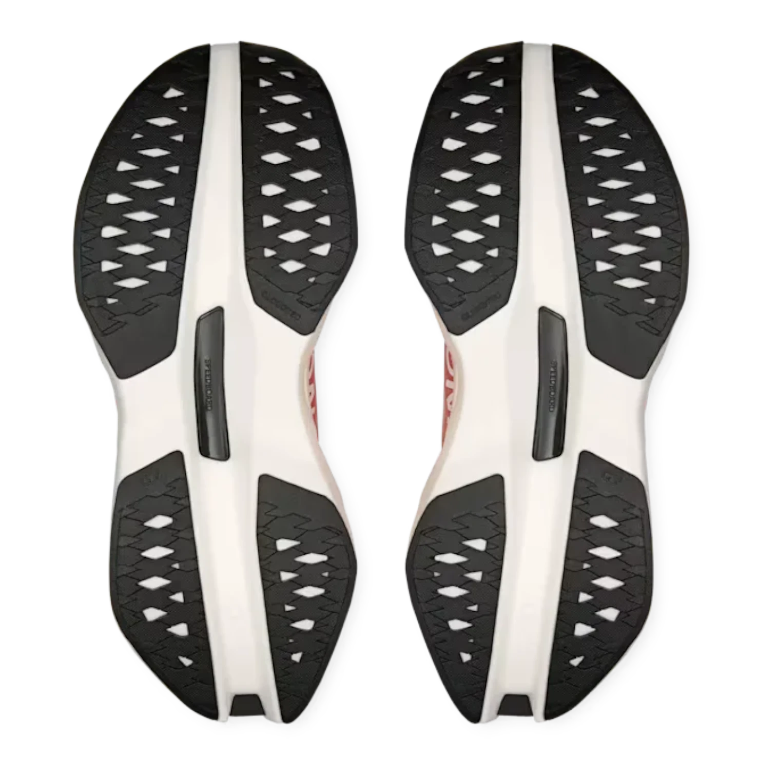 Built for high-performance mileage, this marathon training shoe from On Running delivers speed, efficiency and long-distance comfort. Weighing just 250g, it features a responsive CloudTec® cushioning system engineered for fast runs, paired with a double layer of Helion™ HF hyper foam for maximum energy return and lasting comfort. The glass fiber-infused Speedboard® enhances propulsion and stability, while the lightweight breathable mesh upper adapts to your foot for a secure, flexible fit. A padded heel design ensures comfort over extended distances, and the durable rubber outsole provides reliable grip on the road—making it ideal for marathon training and performance running.