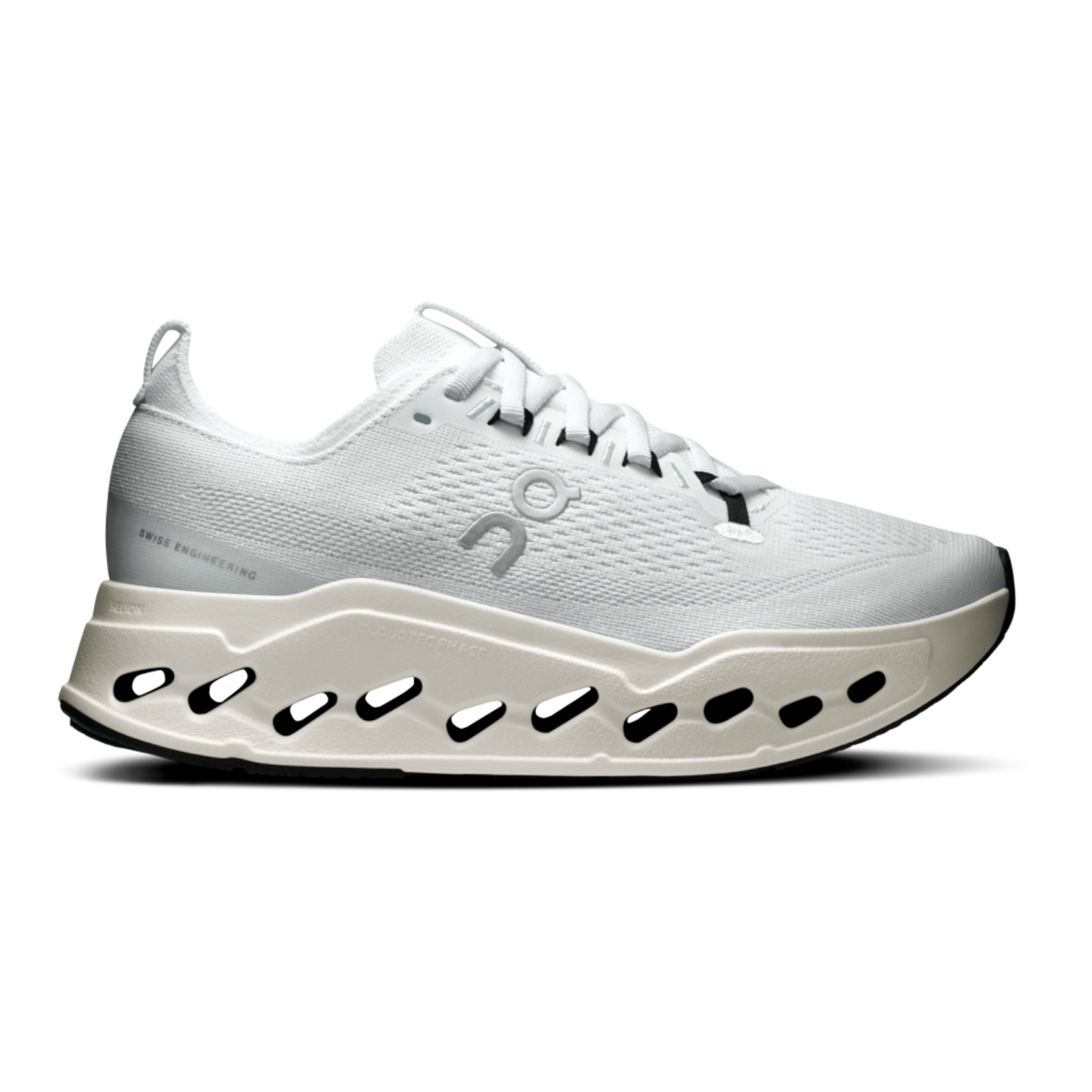 Designed for effortless long-distance comfort, the Cloudsurfer Max from On delivers a smooth, cushioned ride for runners who want to go farther with ease. Built with a double layer of CloudTec Phase™ cushioning, this lightweight 262g running shoe ensures seamless heel-to-toe transitions while reducing impact on every stride. Soft Helion™ foam enhances underfoot comfort for sustained runs, while the updated midsole geometry promotes natural, fluid movement. A breathable mesh upper keeps your feet cool, next-generation eyestays provide a secure and comfortable fit, and the durable rubber outsole offers reliable traction on the road—making the Cloudsurfer Max an ideal choice for long, relaxed runs and daily mileage.
