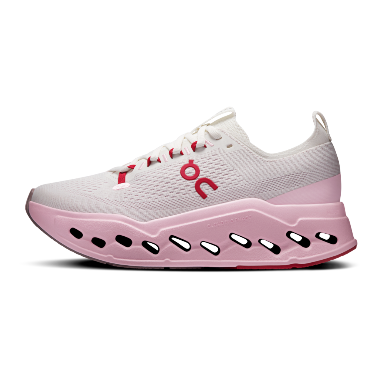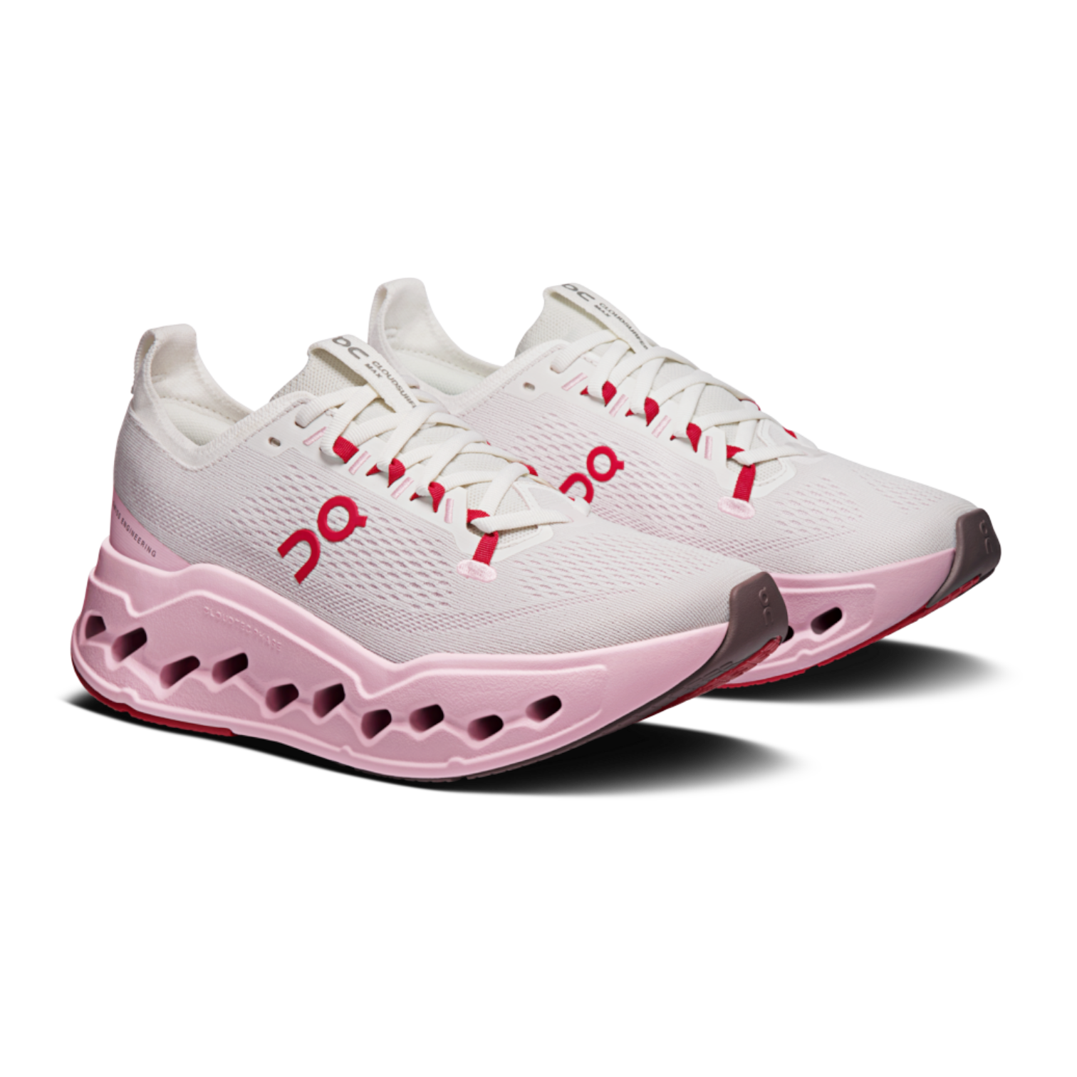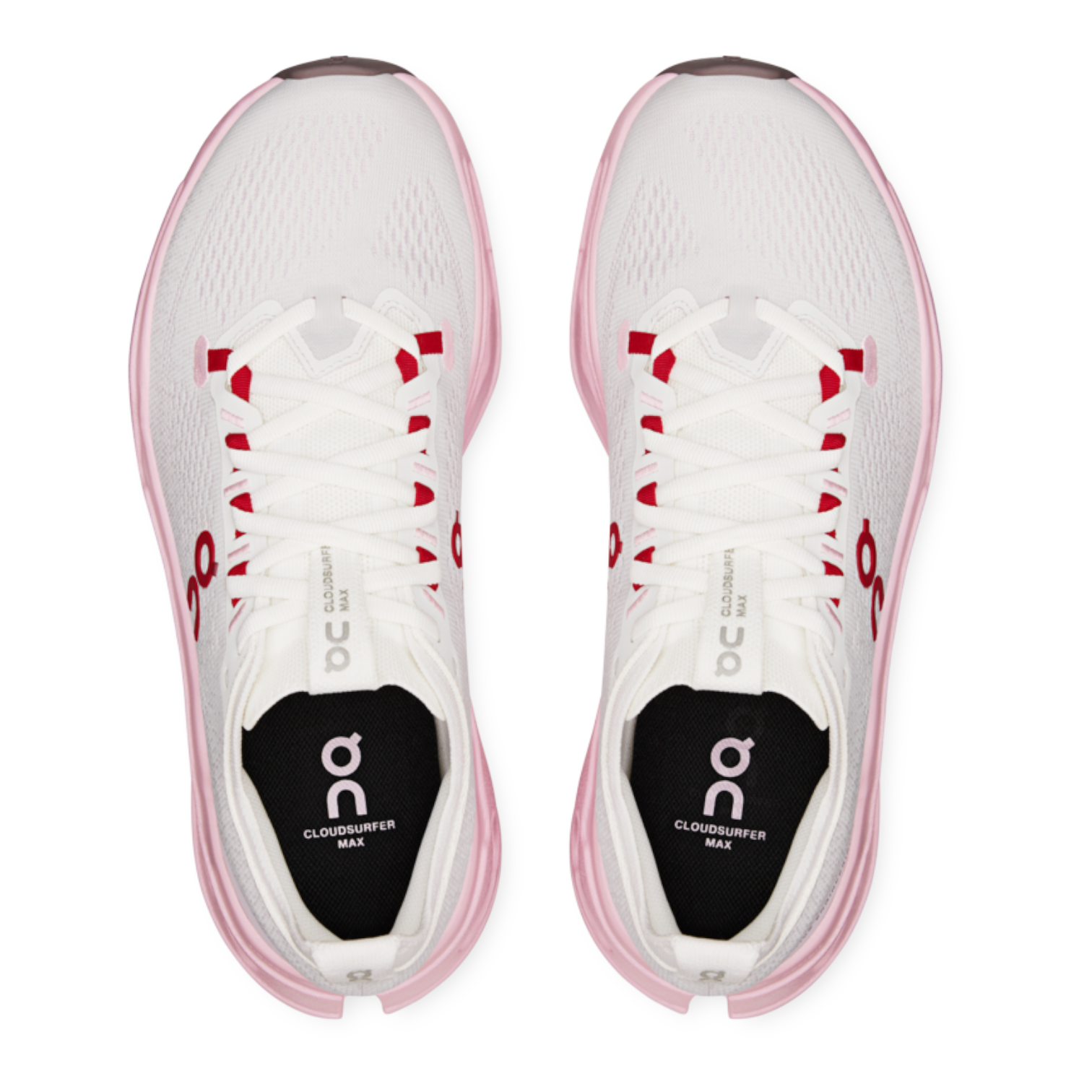 The On Running Cloudsurfer Max is a women’s road running shoe designed for long, effortless training runs with maximum comfort and cushioning. Powered by a double layer of CloudTec Phase® technology and Helion™ superfoam, it delivers an ultra-smooth heel-to-toe transition, superior shock absorption, and lasting energy return mile after mile. The breathable mesh upper, flat knit collar, and next-generation eyestays ensure a secure yet comfortable fit, while rubber outsole pads provide reliable grip on the road. Lightweight, highly cushioned, and made using sustainable materials, the Cloudsurfer Max from On Running is ideal for neutral runners and supinators seeking a plush, stable, and breathable shoe for long-distance training.