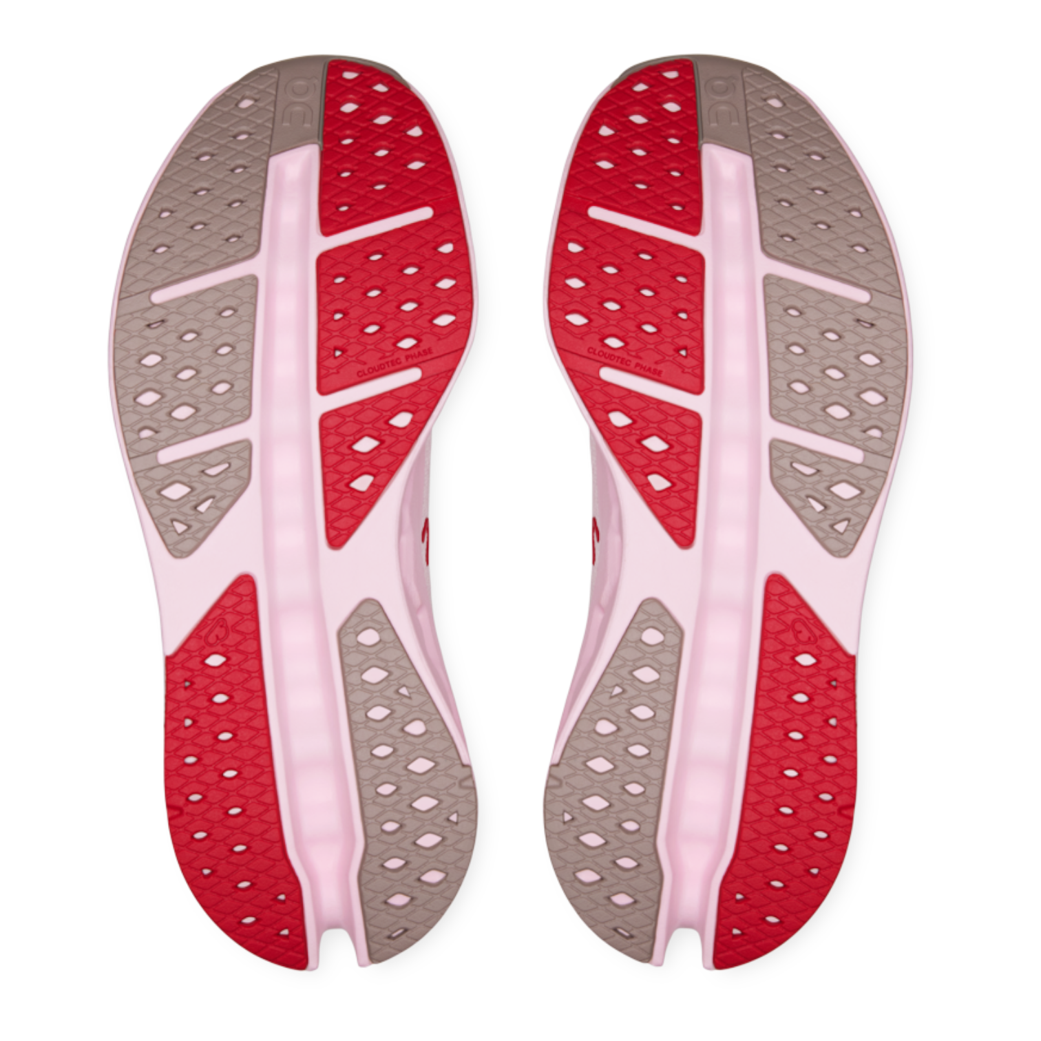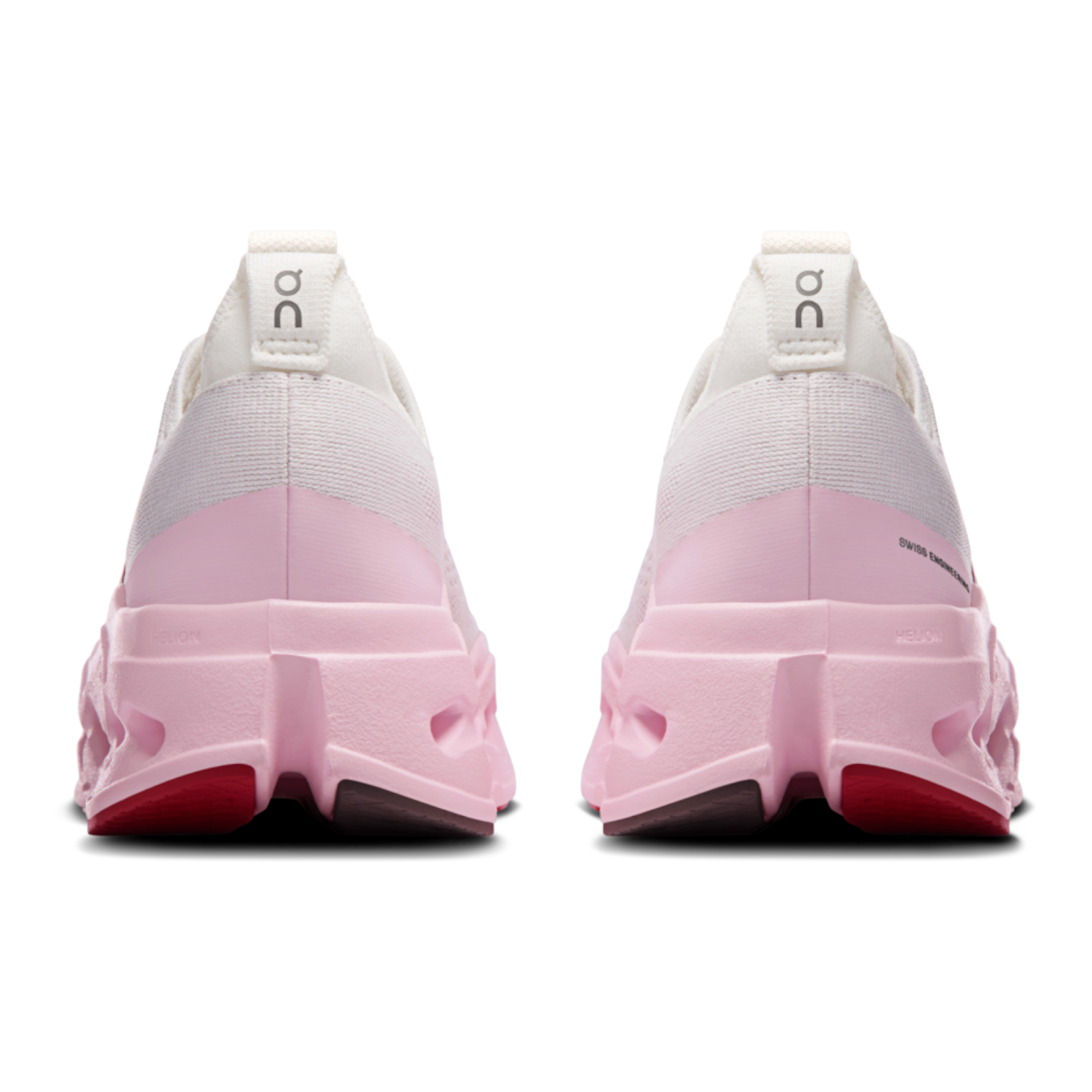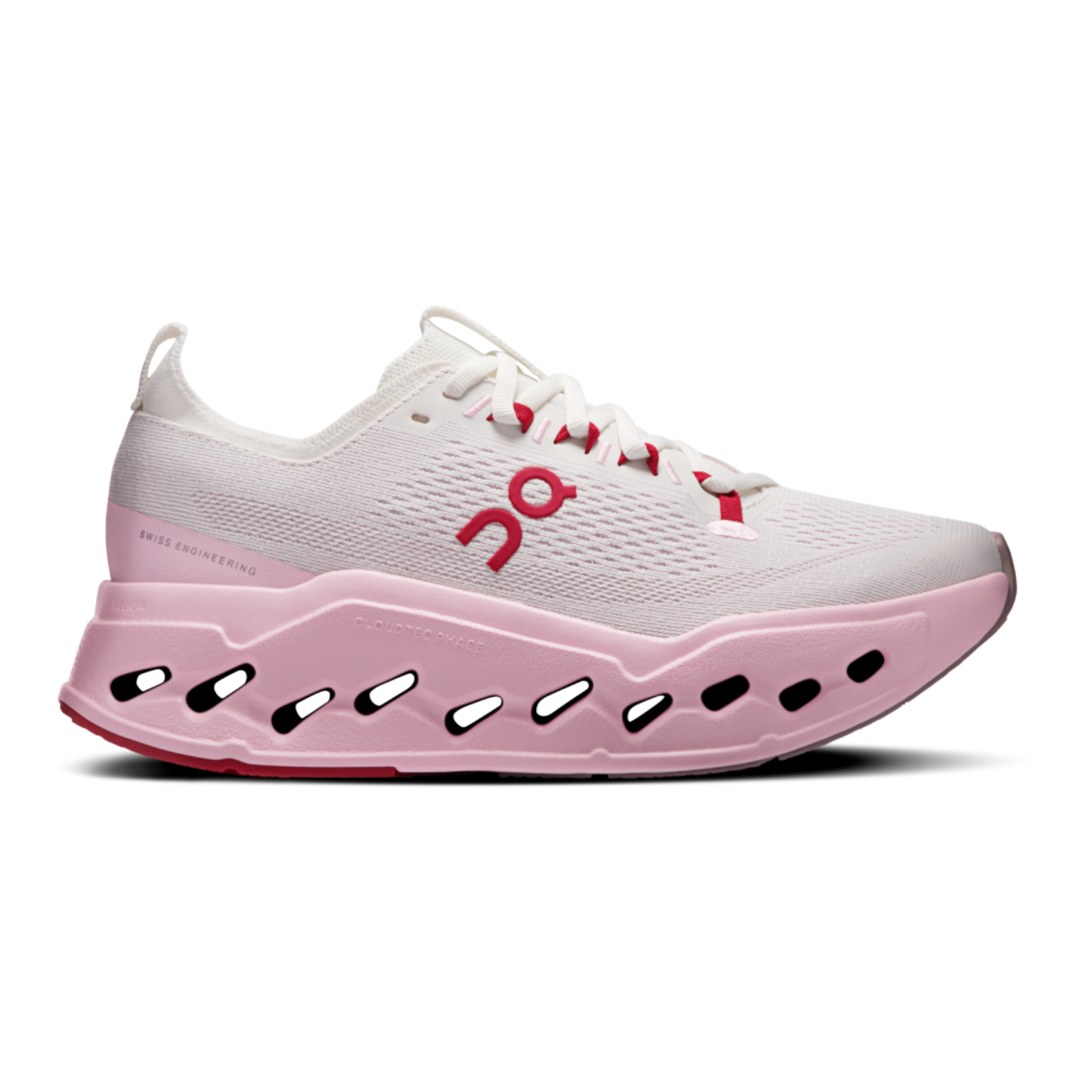 The On Running Cloudsurfer Max is a women’s road running shoe designed for long, effortless training runs with maximum comfort and cushioning. Powered by a double layer of CloudTec Phase® technology and Helion™ superfoam, it delivers an ultra-smooth heel-to-toe transition, superior shock absorption, and lasting energy return mile after mile. The breathable mesh upper, flat knit collar, and next-generation eyestays ensure a secure yet comfortable fit, while rubber outsole pads provide reliable grip on the road. Lightweight, highly cushioned, and made using sustainable materials, the Cloudsurfer Max from On Running is ideal for neutral runners and supinators seeking a plush, stable, and breathable shoe for long-distance training.