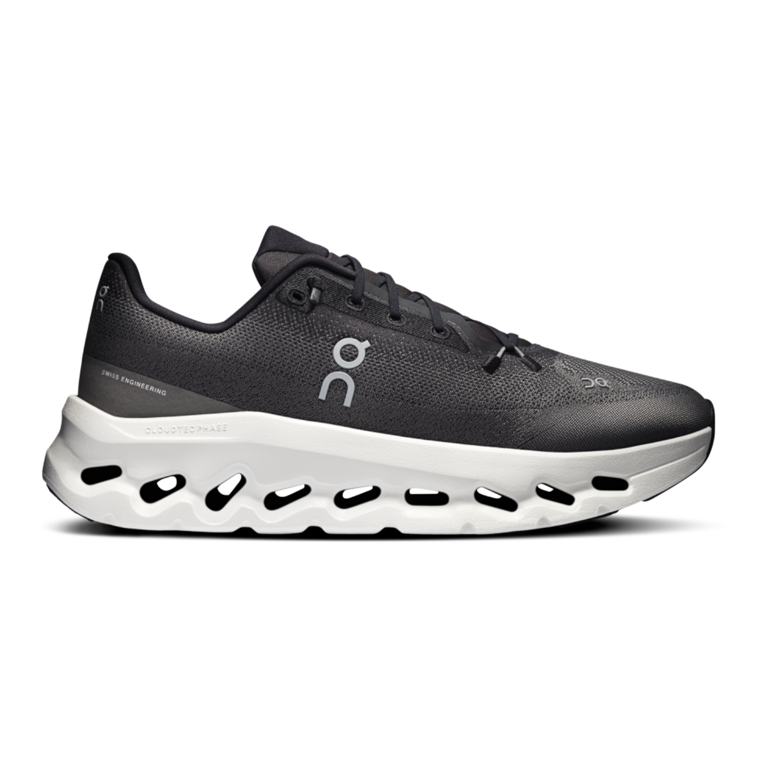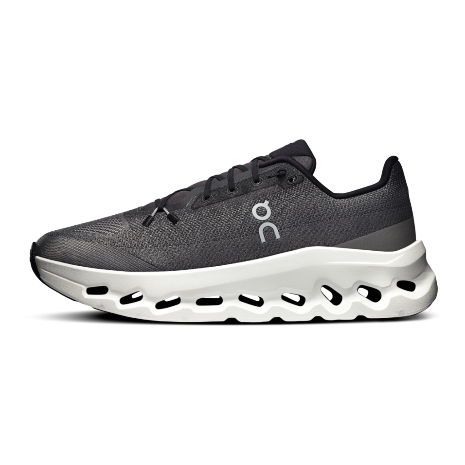 The engineered mesh upper is made from recycled polyester and finished using a dope dyeing process that uses up to 90% less water than traditional methods, reinforcing On’s commitment to sustainable innovation. Finished in a versatile Black/Asphalt colorway, the Cloudtilt blends technical performance with clean, modern aesthetics—perfect for everyday wear.