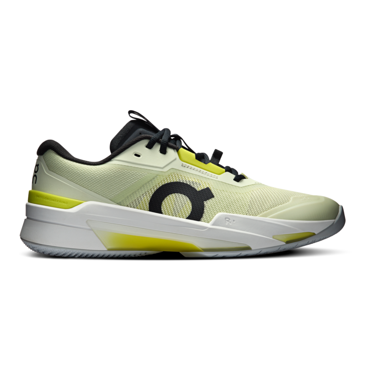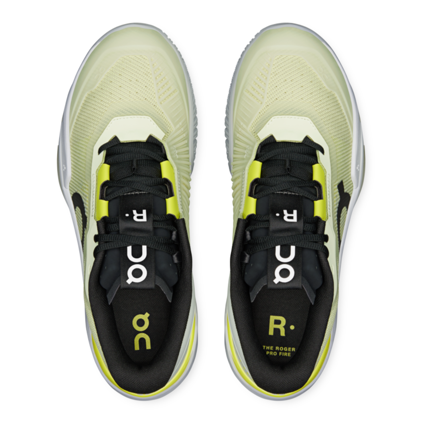 Built for high-intensity hard-court play, the On The Roger Pro Fire Shoes “Linen/Lime” by On Running deliver elite performance, durability, and control for competitive tennis players. The exclusive Speedboard® supports the midfoot during aggressive lateral movements while extending under the toe to boost energy return without sacrificing natural flexibility. Thick padding around the heel and tongue ensures maximum comfort and protection throughout long matches, while reinforced overlays and molded toe and midfoot areas enhance durability for players who slide and pivot aggressively. A secure midfoot lacing system with internal lace holes keeps the foot locked in during high-speed play, and the rubber outsole with a split herringbone pattern provides superior grip, stability, and confidence on hard courts.