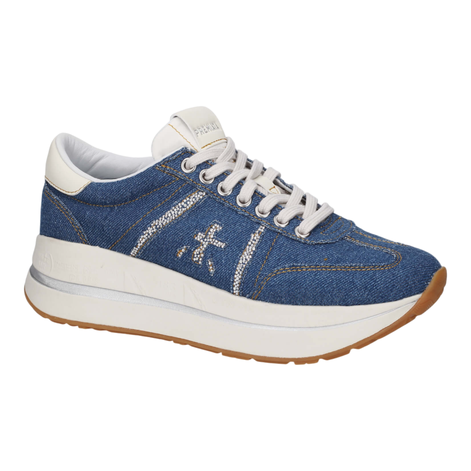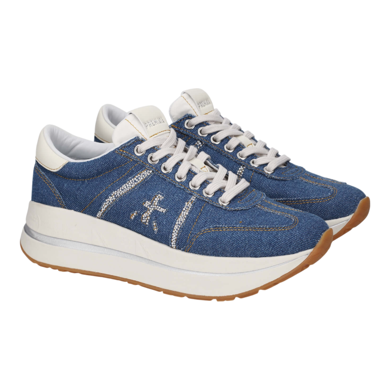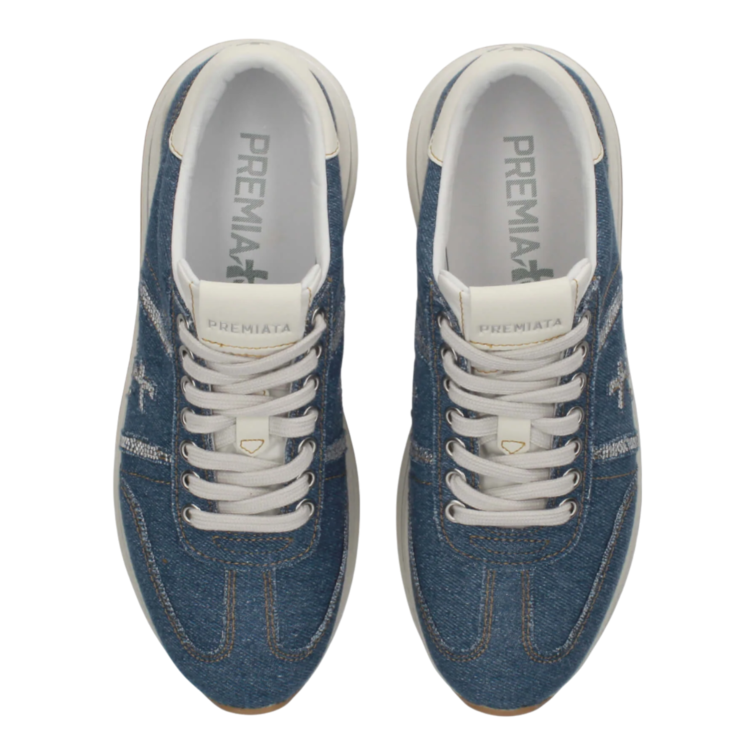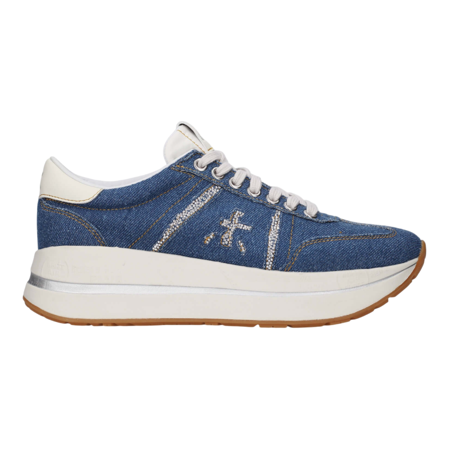 This women’s Premiata sneaker is born from the fusion of the iconic Beth and Conny models, combining sporty energy with refined femininity. Designed with a lightweight, cushioned sole and a sleek, contemporary silhouette, it delivers everyday comfort and natural movement. Crafted from a premium blend of cotton-based fabric and technical materials with a soft goat leather lining, the design is elevated by contrasting details and signature Premiata branding—perfect for versatile, modern urban styling.