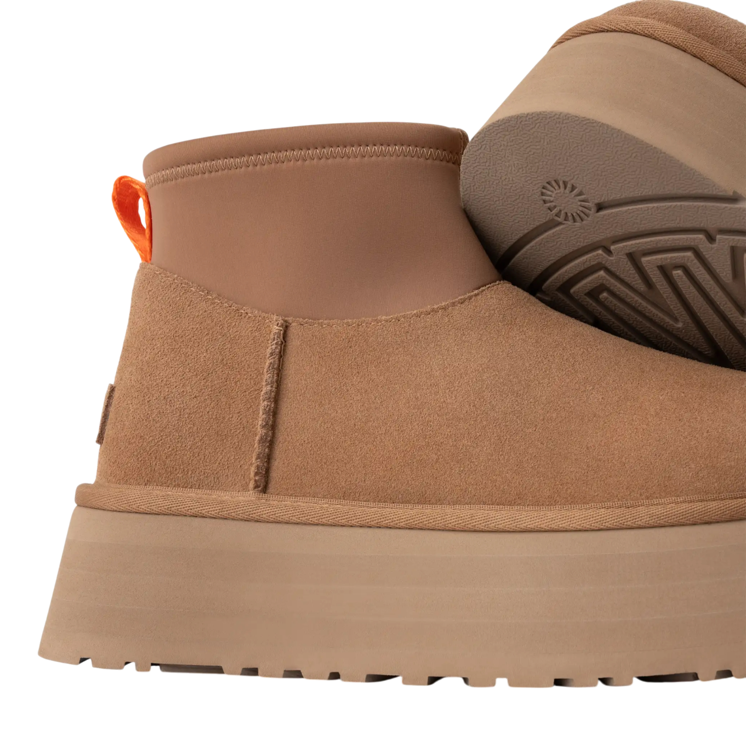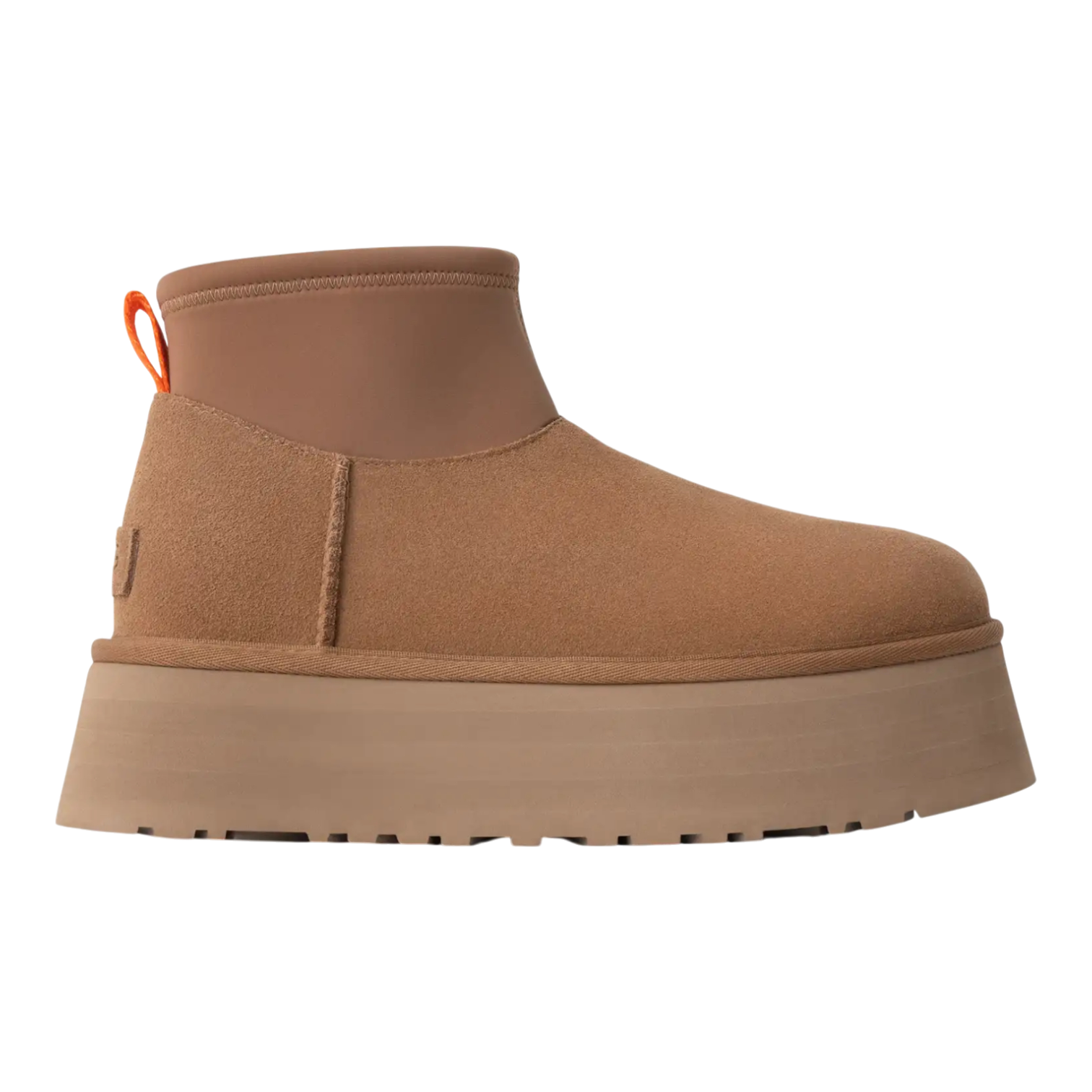The Classic Mini Dipper brings bold attitude in a shortened silhouette that channels all the iconic flair of the original Dipper Boot. With a sleek neoprene shaft, soft suede upper, and plush UGGplush™ lining, it delivers comfort and style in equal measure. A 2” platform adds dramatic lift, while sustainable materials like a sugarcane EVA outsole and recycled polyester accents reflect a modern, conscious design. Made for everyday wear with a standout look.